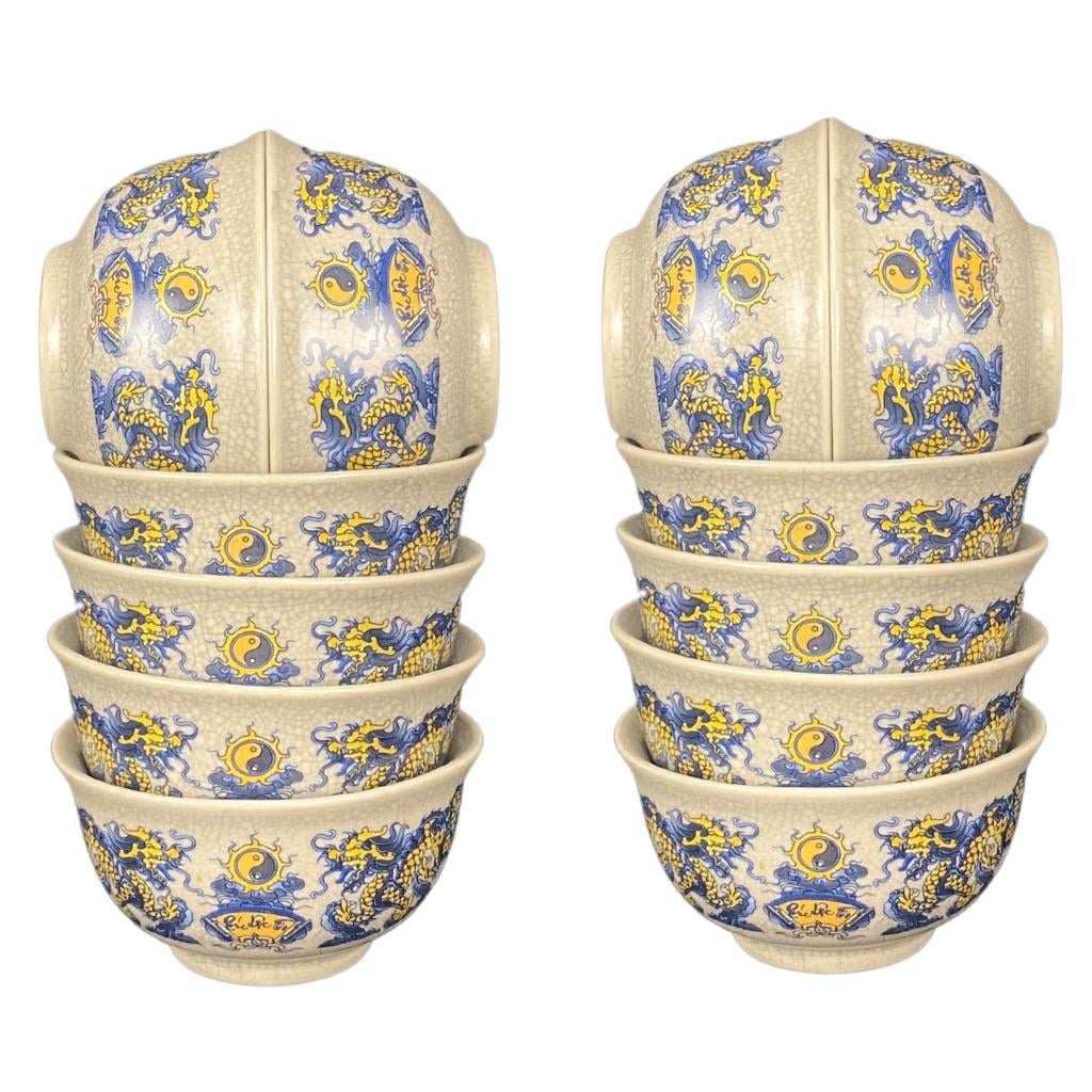 Bộ bát cúng Bát Tràng men rạn vẽ long chầu nguyệt được sử dụng để cúng lễ, thờ cúng tổ tiên, thần linh. Bộ bát đĩa này mang ý nghĩa tâm linh sâu sắc, thể hiện tấm lòng thành kính của con cháu đối với tổ tiên, thần linh.