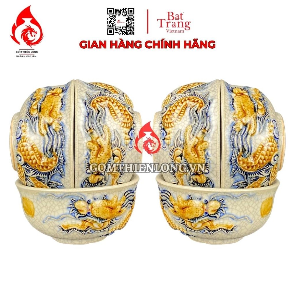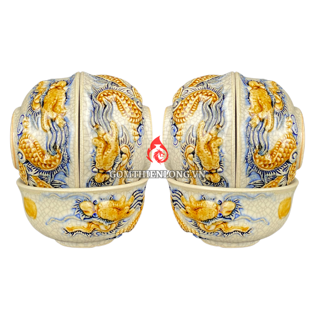 Thông tin sản phẩm Bộ Bát Cơm Thờ Cúng Bát Tràng Men Rạn Đắp Nổi Rồng 231150