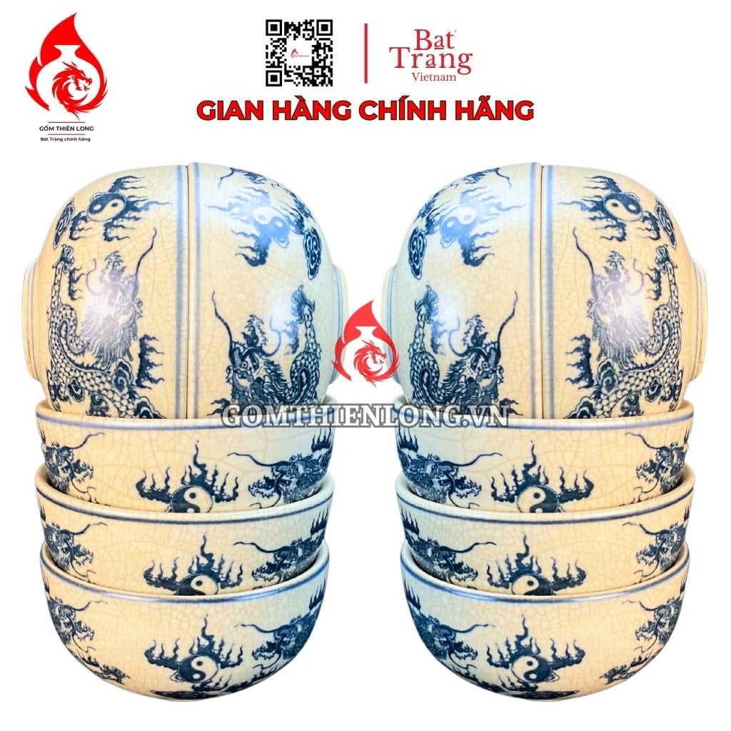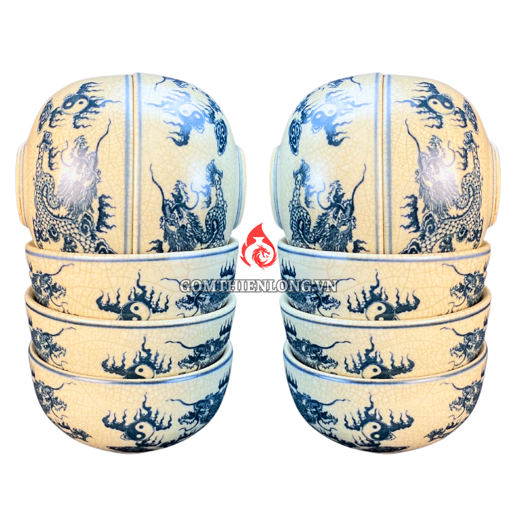 Tìm hiểu bộ bát cơm thờ cúng Bát Tràng men rạn vẽ rồng phượng