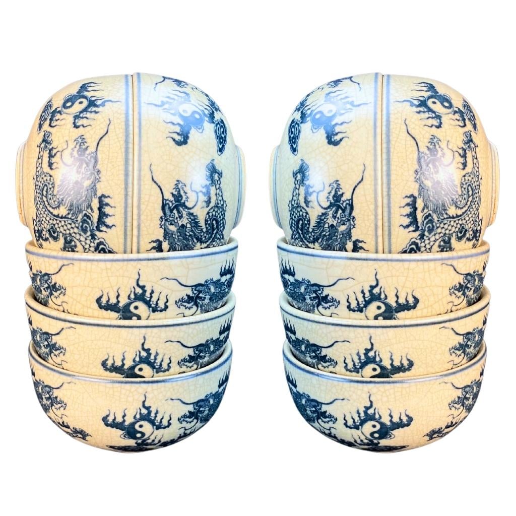 Bộ bát cúng Bát Tràng men rạn vẽ rồng phượng được sử dụng để cúng lễ, thờ cúng tổ tiên, thần linh. Bộ bát đĩa này mang ý nghĩa tâm linh sâu sắc, thể hiện tấm lòng thành kính của con cháu đối với tổ tiên, thần linh.