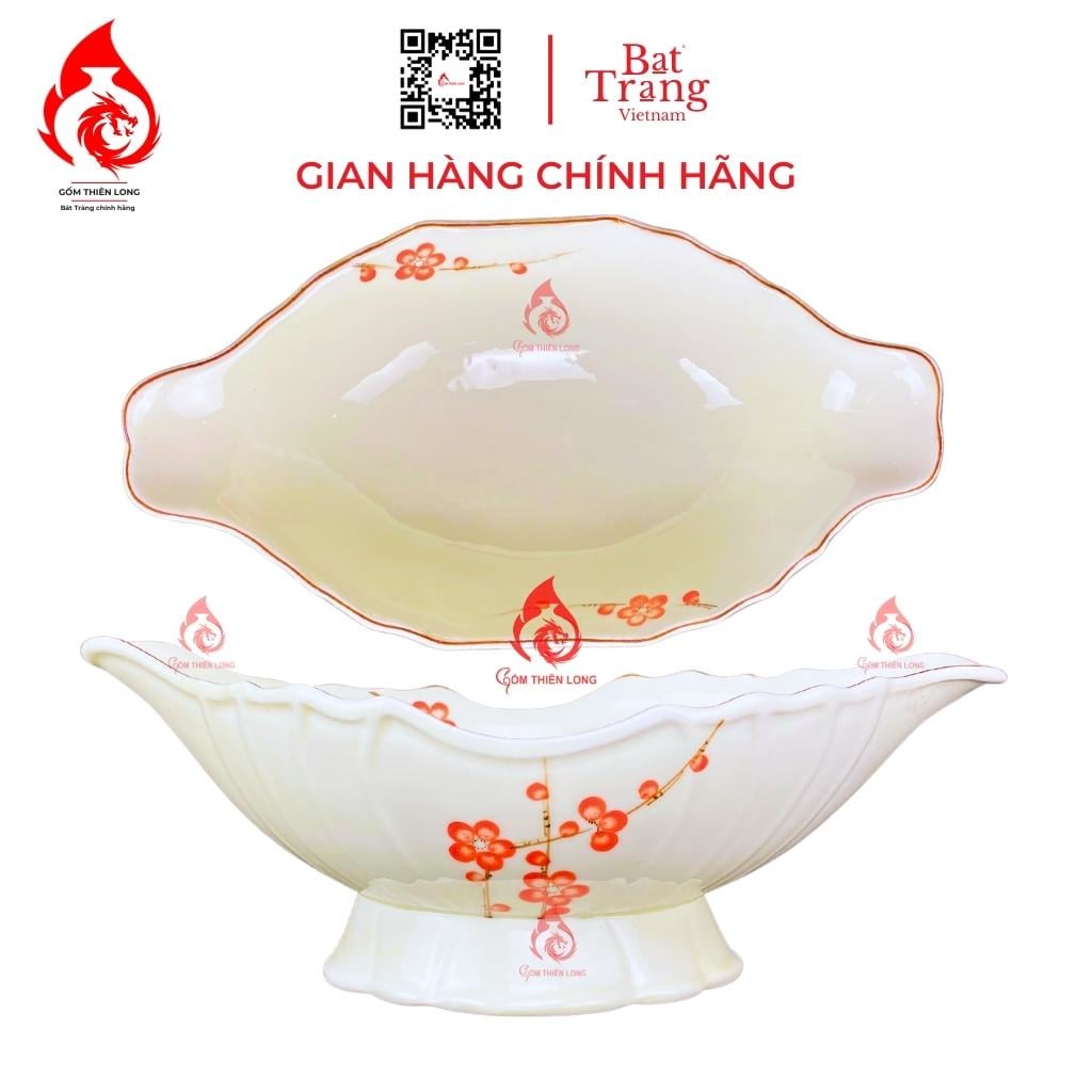 Bát đựng gà cúng Bát Tràng men kem vẽ đào đỏ là một sản phẩm thủ công mỹ nghệ truyền thống của làng gốm Bát Tràng. Bát được làm từ chất liệu gốm sứ cao cấp, có độ bền cao, không bị phai màu theo thời gian. Bát có hình dáng như một chiếc thuyền, lòng sâu, có đế cao để đặt gà được chắc chắn. Kích thước bát thường dao động từ 30 đến 40 cm, tùy theo kích thước của con gà cúng.