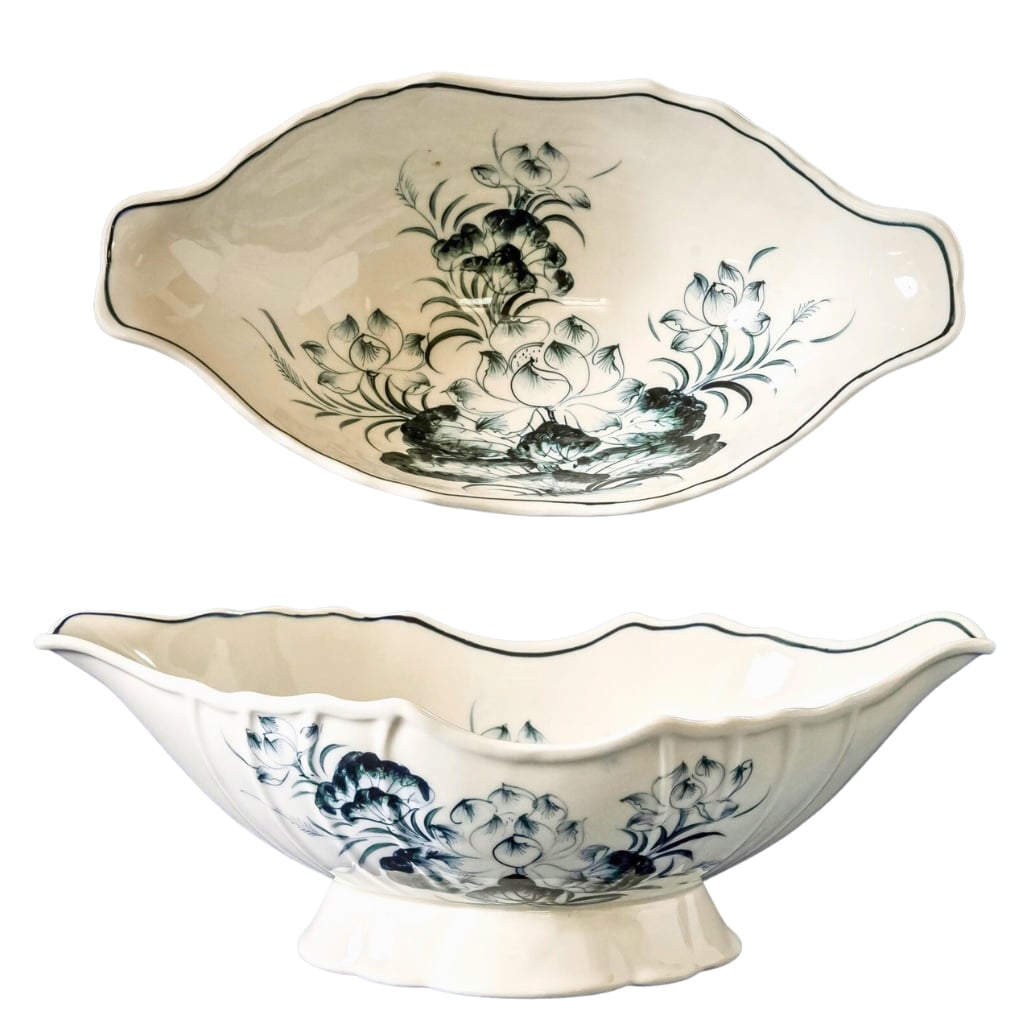 Bát thuyền đựng gà cúng Bát Tràng vẽ hoa sen là một vật phẩm quan trọng trong mâm cúng của người Việt Nam. Gà cúng là một món vật phẩm không thể thiếu trong các lễ cúng, lễ tết, lễ hội,... Gà cúng được bày trên bát đựng gà cúng Bát Tràng vẽ hoa sen chàm sẽ thể hiện được sự thành kính của gia chủ đối với các vị thần linh, tổ tiên.