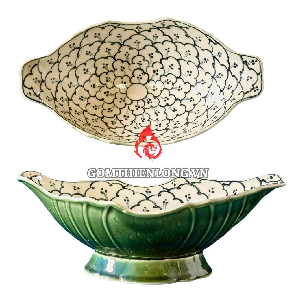 Thông tin sản phẩm Bát Đựng Gà Cúng Xanh Rêu Vẽ Liên Hoa 230923