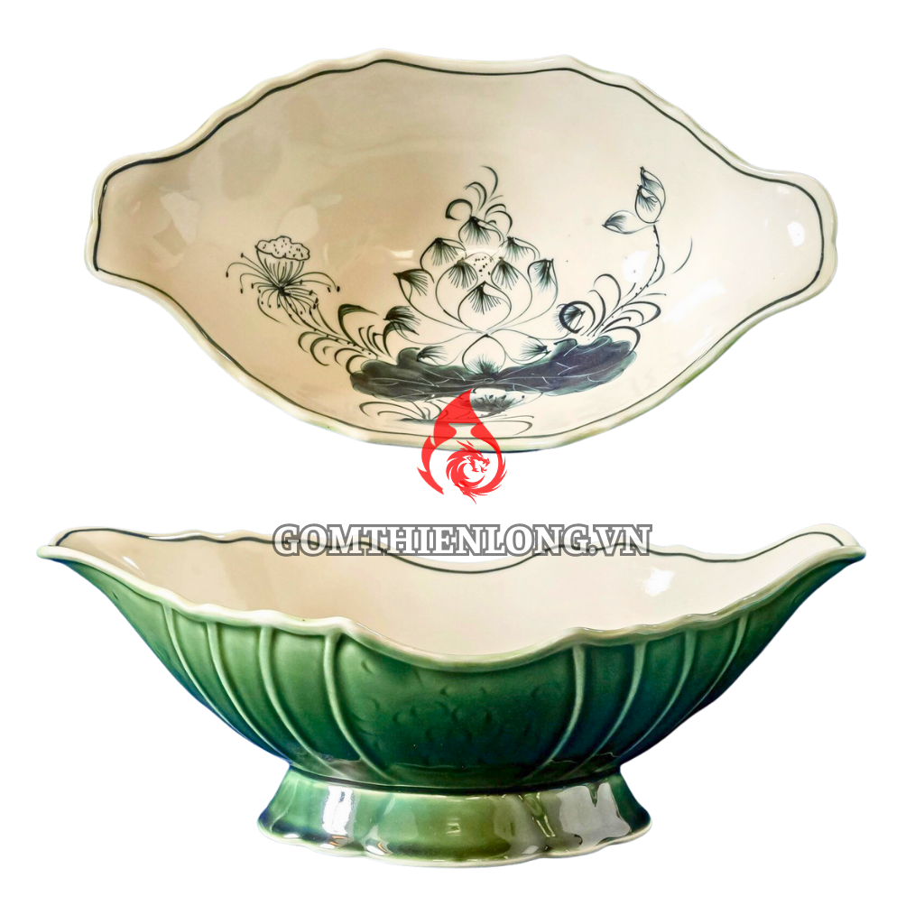 Thông tin sản phẩm Bát Đựng Gà Cúng Xanh Rêu Vẽ Sen 230920