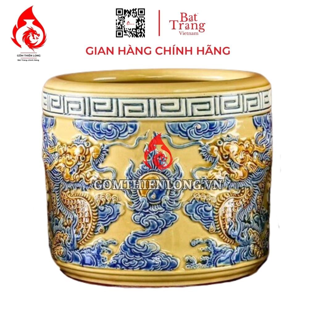 Nếu quý khách còn lăn tăn về chất lượng, nguồn gốc có thể ghé trực tiếp xưởng sản xuất của chúng tôi hay liên hệ để được cung cấp các thông tin cần thiết. Quý khách hàng có thể an tâm khi chọn lựa bát hương màu vàng hoàng tộc đắp nổi rồng 231019 Bát Tràng tại gốm Thiên Long.