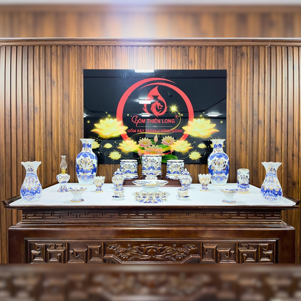 Bộ bát hương vẽ vàng 24k men lam vẽ sen Bát Tràng cao cấp - Sự kết hợp hoàn hảo giữa truyền thống và hiện đại