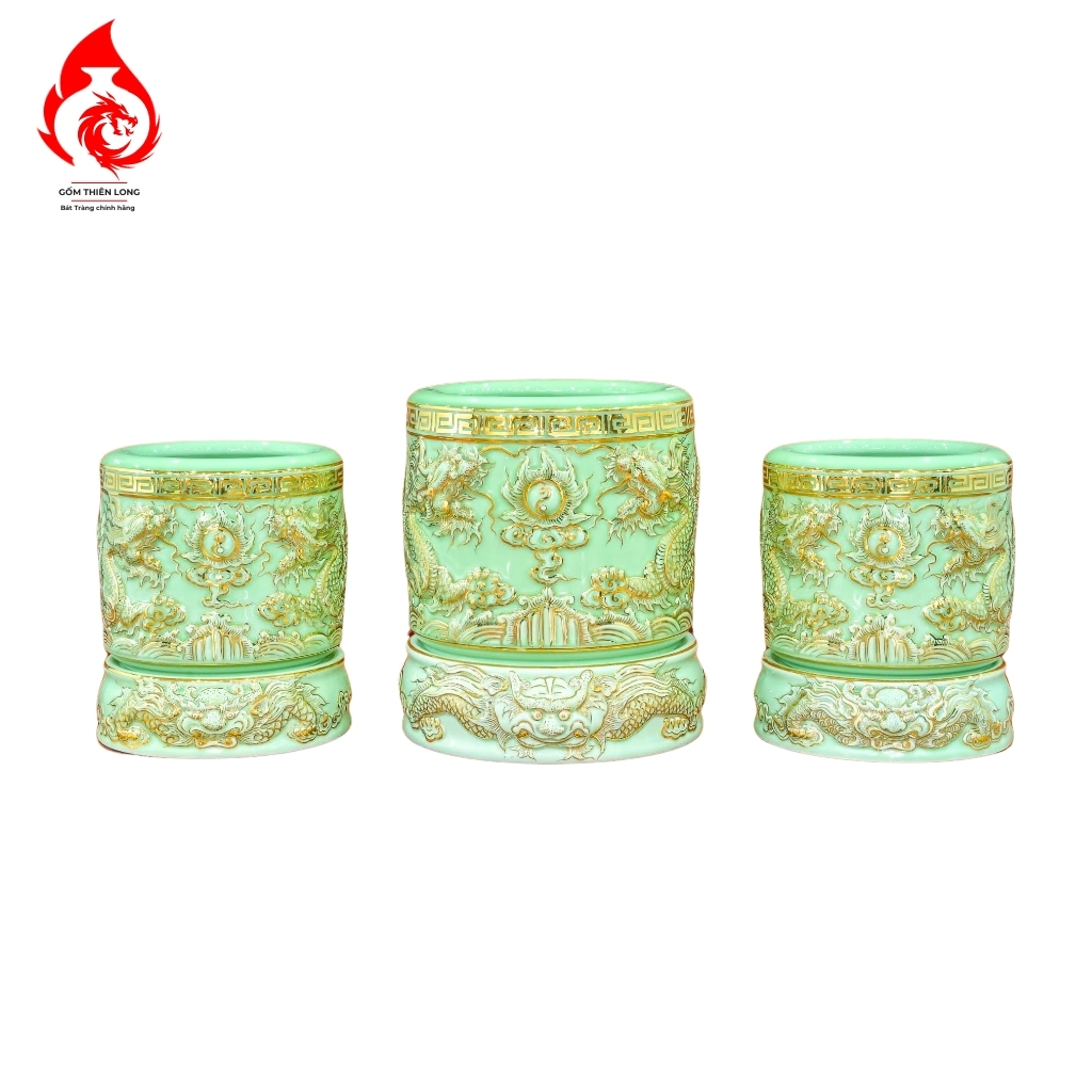 Bát Hương Bát Tràng Men Xanh Ngọc Bích Vẽ Vàng 24k – Sự lựa chọn hoàn hảo cho không gian thờ cúng