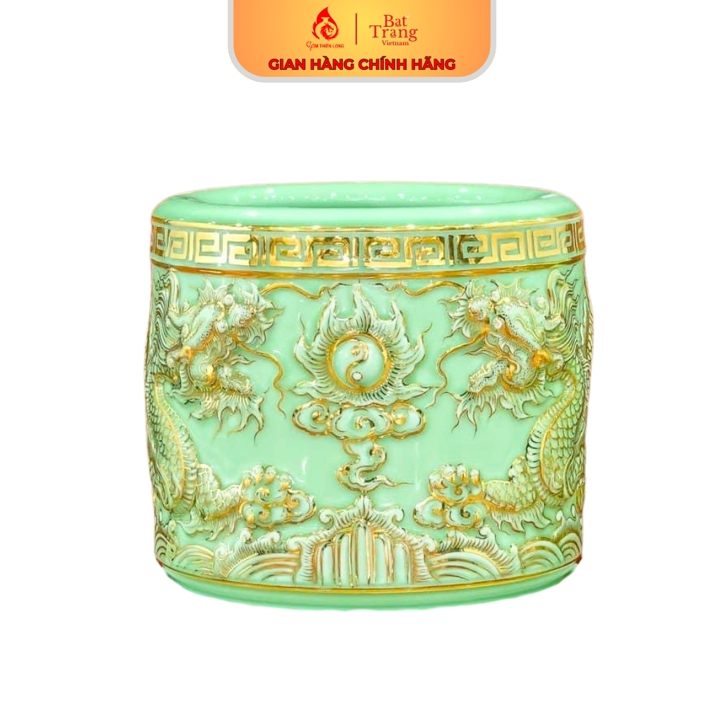 Bát hương Bát Tràng men xanh ngọc bích vẽ vàng 24k là một trong những sản phẩm hàng hiếm, cao cấp hiện nay. Sự kết hợp hài hòa giữa màu xanh ngọc bích thanh lịch, họa tiết tinh xảo và lớp vàng 24k sáng bóng đã tạo nên một tác phẩm nghệ thuật độc đáo, mang đậm giá trị truyền thống.