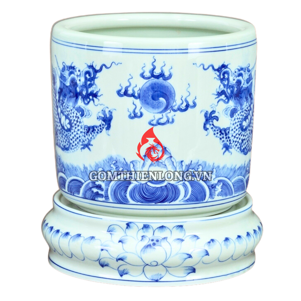 Họa tiết: Hoa văn trên bát hương được vẽ tay đôi rồng chầu mặt nguyệt cùng hoa văn mây, hoa sen bởi nghệ nhân