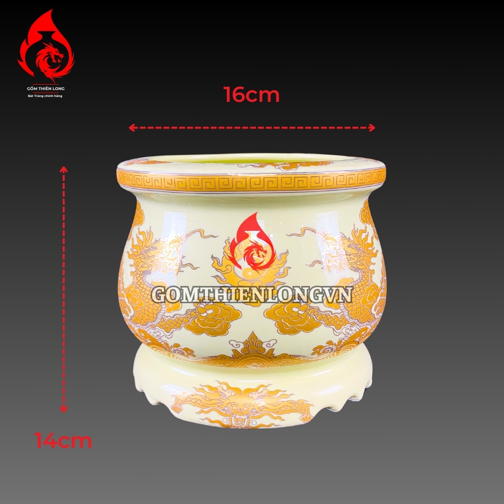 Bát Hương Quả Lựu Bát Tràng Men Vàng Vẽ Ánh Kim - Biểu Tượng May Mắn và Phú Quý