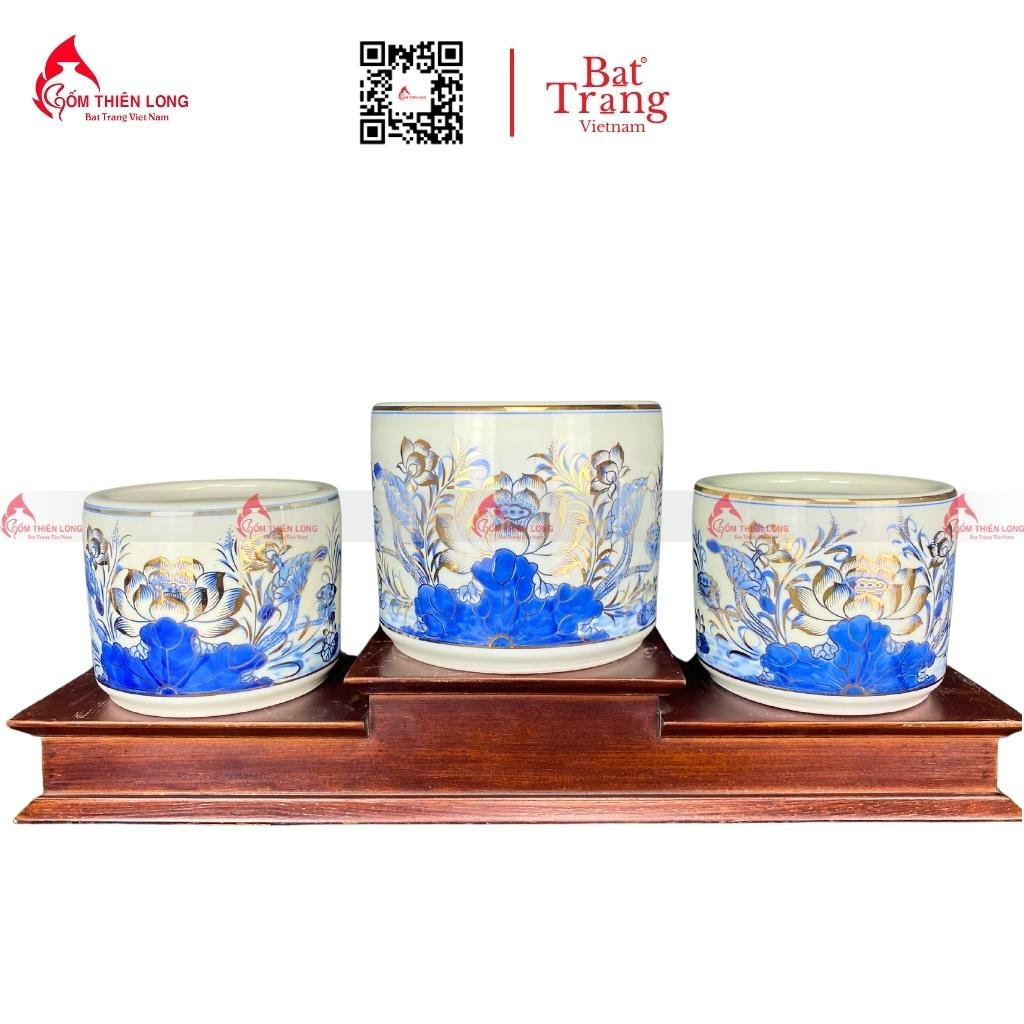 Bát Hương Vẽ Vàng Hoa Sen Gốm Bát Tràng