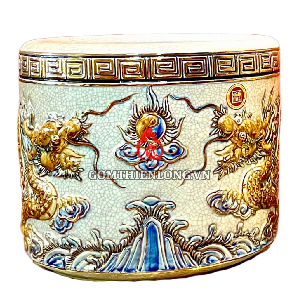 Đơn vị cung cấp bát hương vẽ vàng men rạn đắp nổi rồng 231007