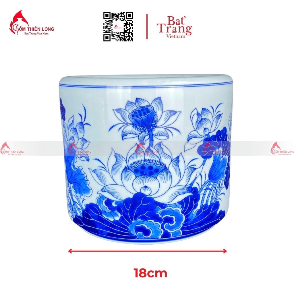 Phân khúc sản phẩm: Bát hương vuốt tay độc bản, men lam vẽ tay hoa sen thuộc phân khúc đồ thờ cúng - tâm linh cao cấp của gốm Bát Tràng.