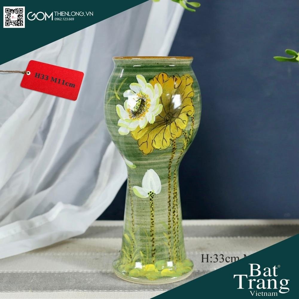 Bình cắm hoa men ganh xanh rêu gốm Bát Tràng Thiên Long mang có dáng vẻ cực kỳ hút mắt, ấn tượng với màu sắc bắt mắt, hoa văn sống động. Trang trí những chiếc bình cắm hoa này trong nhà, không gian sống của bạn sẽ trở nên đặc sắc, đầy tính nghệ thuật. Hơn thế nữa, bình còn mang những ý nghĩa tốt đẹp về mặt phong thủy nên được rất nhiều người ưa chuộng. Cùng theo dõi để hiểu hơn về bình cắm hoa men ganh xanh rêu làm từ gốm Bát Tràng đáng mua này!