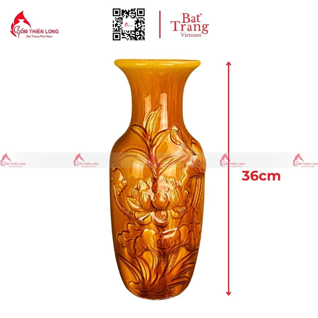 Bình hoa được tráng men hoàng thổ một cách chuyên nghiệp. Đặc biệt, do là dòng men cao cấp nên có độ bền cao, không bị phai màu.