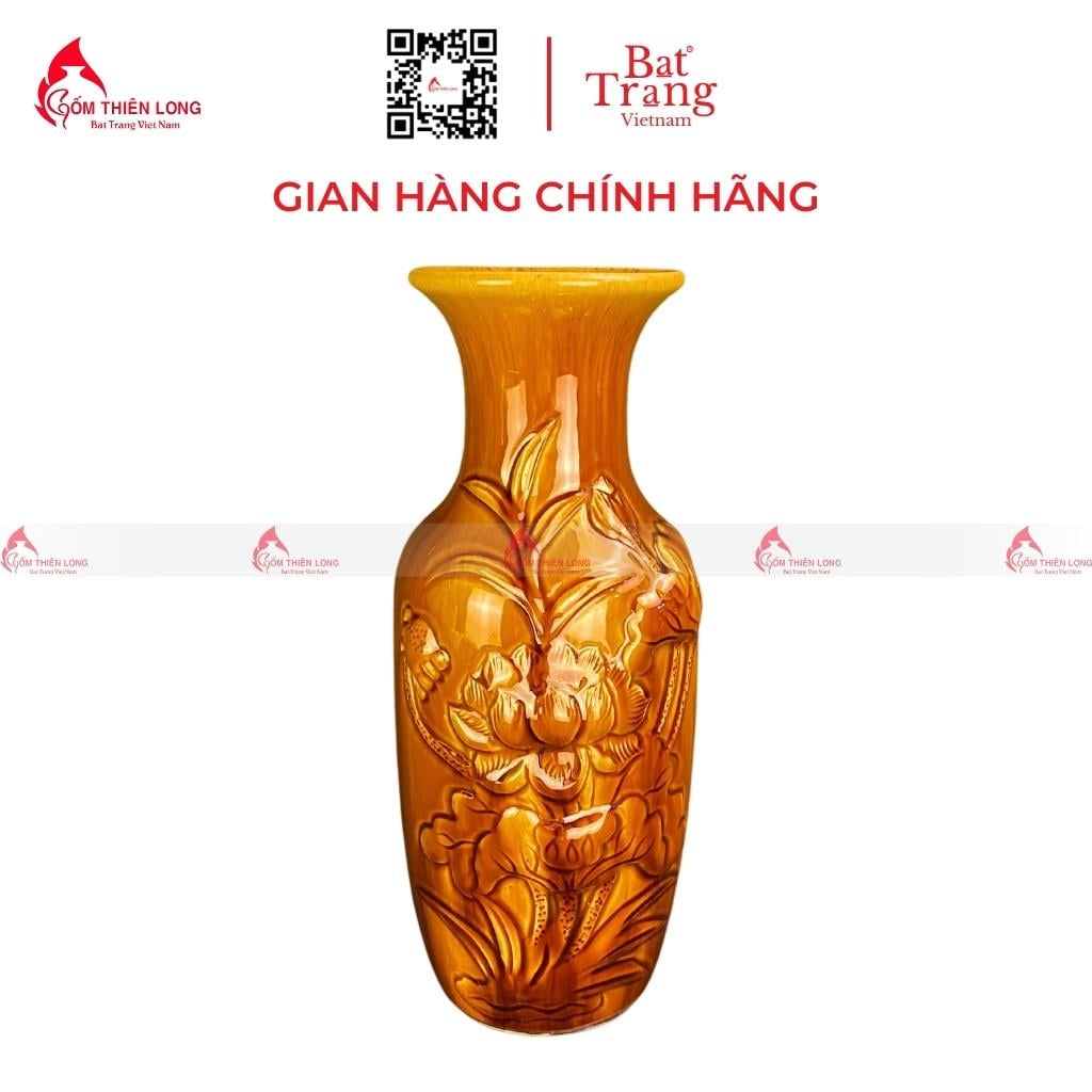 Bình hoa bàn thờ men hoàng thổ có nhiều kích thước và kiểu dáng khác nhau, phù hợp với nhiều loại bàn thờ. Sản phẩm được làm từ chất liệu gốm sứ cao cấp, có độ bền cao và không bị phai màu theo thời gian. Bình hoa được tráng men một cách tinh xảo, mang đến vẻ đẹp sang trọng và tinh tế.