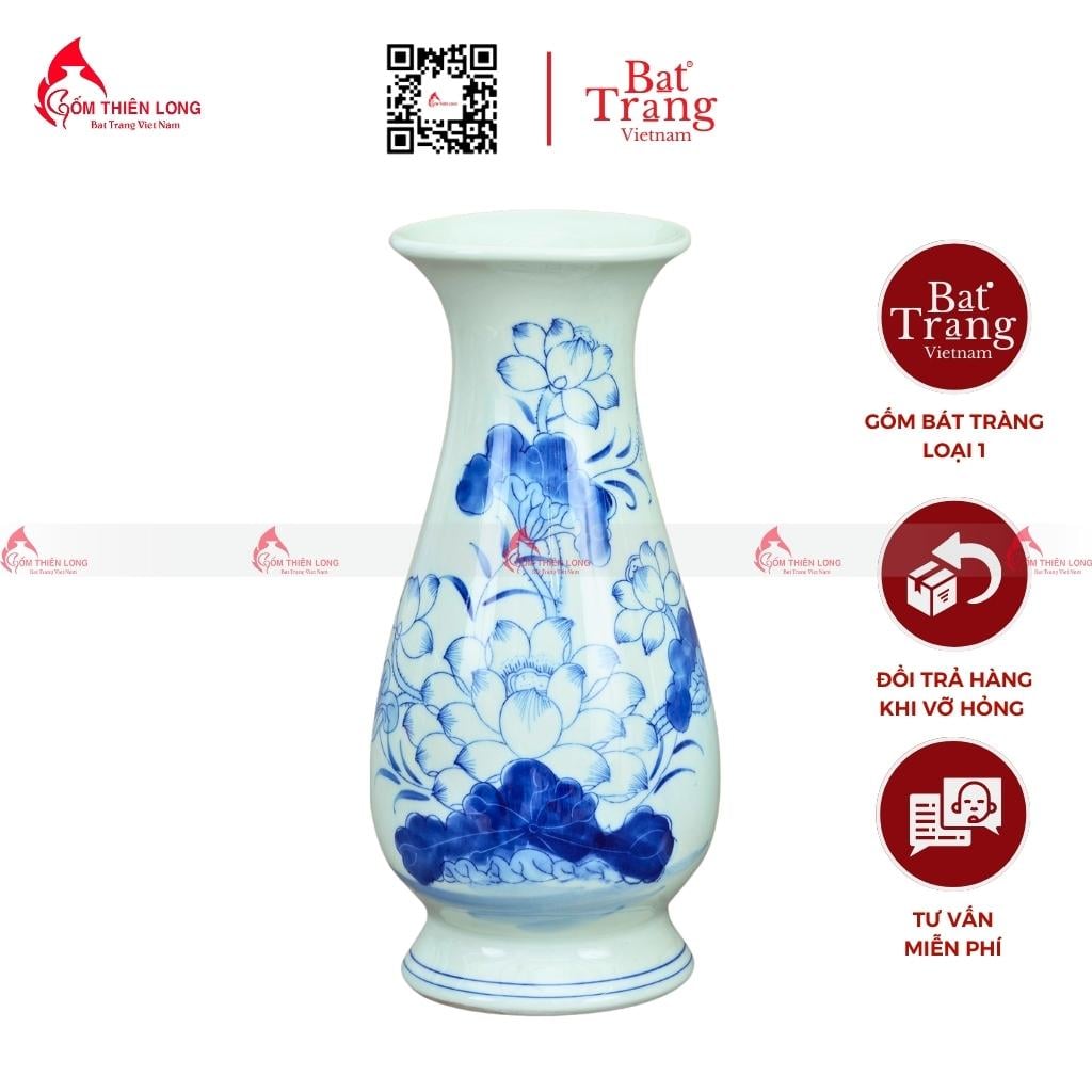 Địa chỉ cung cấp lọ lộc bình men lam cổ Bát Tràng vẽ hoa sen chất lượng, uy tín