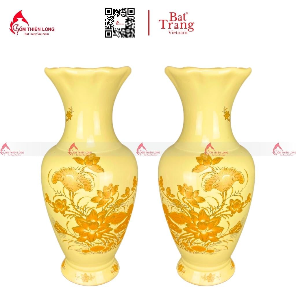 Lọ hoa bàn thờ men vàng là mẫu vật phẩm thờ cúng rất được ưa chuộng đặt trên bàn thờ gia tiên. Với nước men màu vàng sáng bóng, họa tiết bắt mắt, độ bền cao góp phần tăng sự quyền quý, trang nghiêm cho bàn thờ. Sản phẩm có giá trị phong thuỷ rất cao, giúp gia đình bạn xua đuổi tà khí, mang lại bình an và may mắn. Nếu bạn muốn tìm hiểu kỹ hơn về sản phẩm, phong thuỷ cũng như ai hợp với lọ hoa bàn thờ men vàng. Hãy tham khảo bài viết dưới đây của chúng tôi.