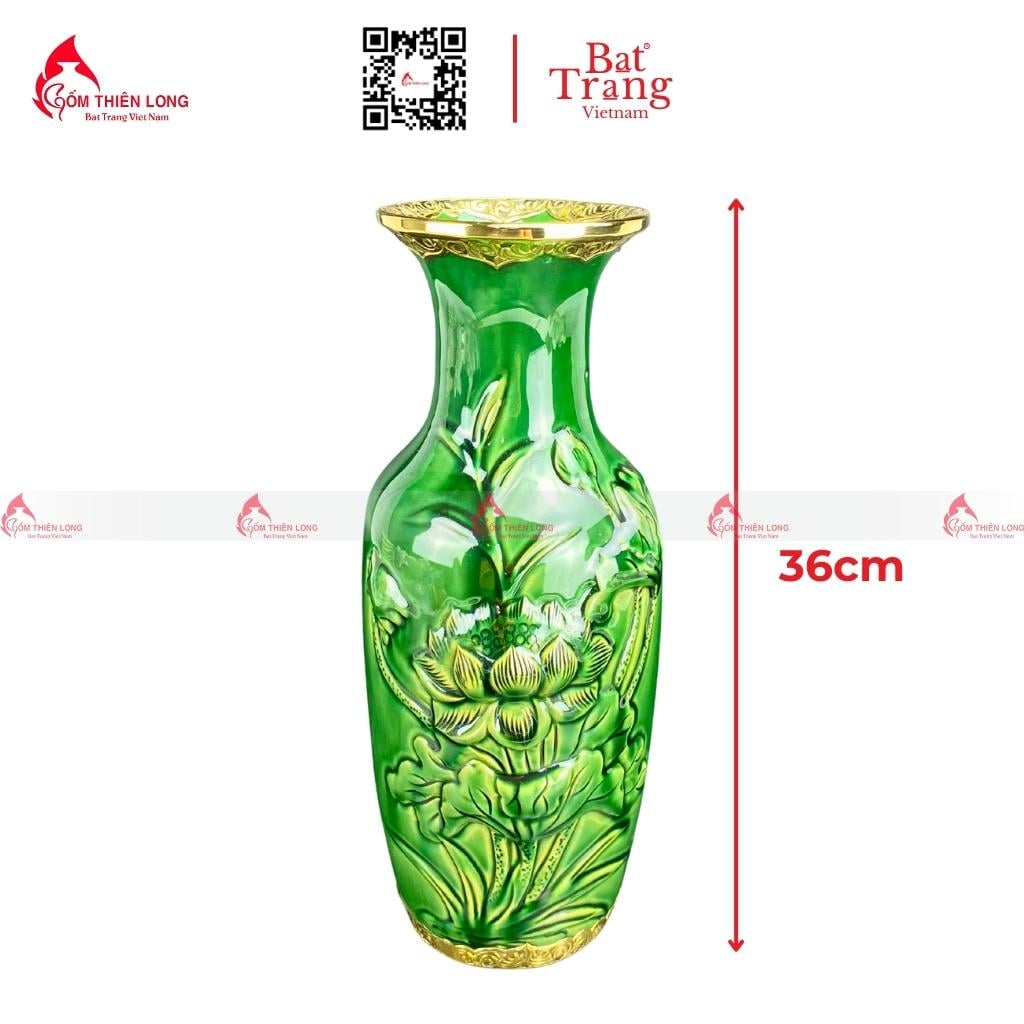 Lọ hoa bàn thờ men xanh ngọc lục bảo rất thích hợp để trưng bày trên bàn thờ, vừa tôn lên vẻ đẹp trang nghiêm của không gian thờ cúng, vừa mang đến may mắn và bình an cho gia đình.