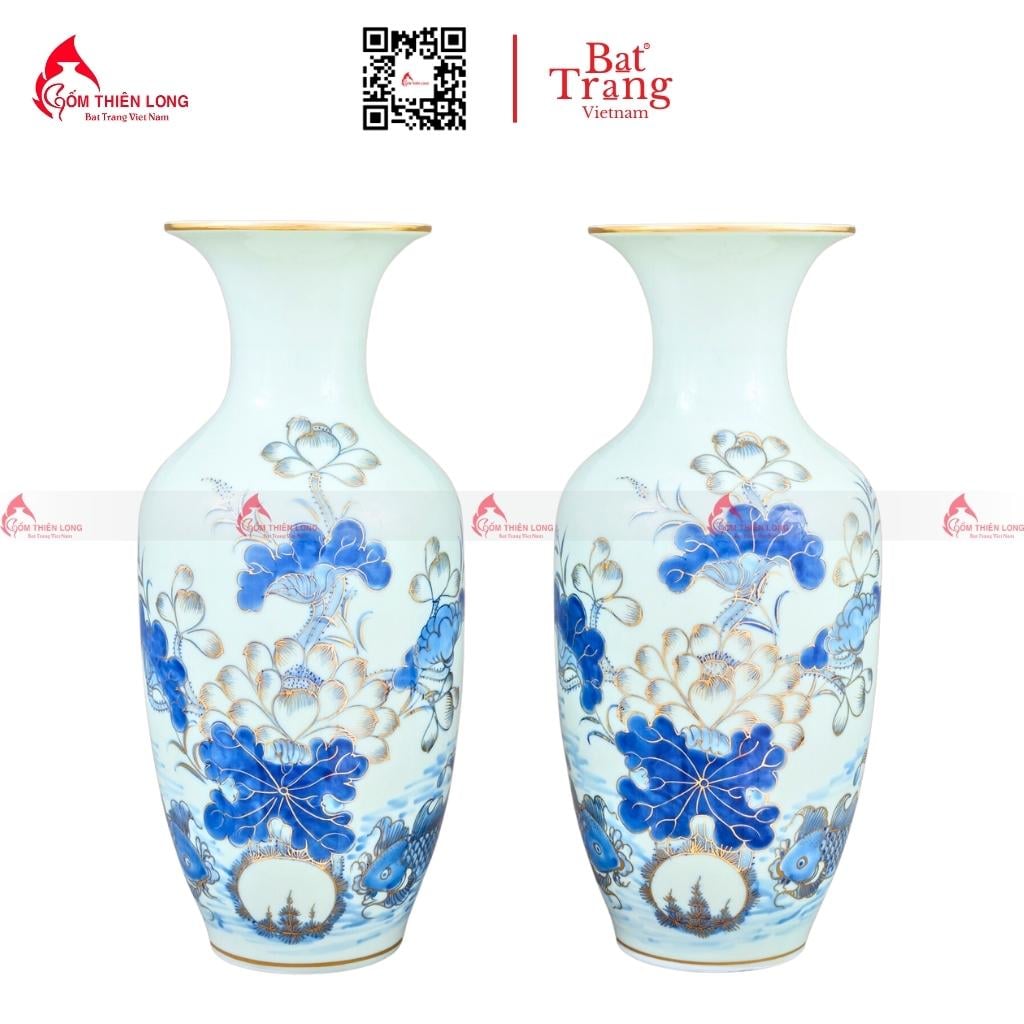- Bình hoa vẽ vàng dáng lộc bình hoa sen cầu kỳ: Bình hoa có hoa văn hoa sen cầu kỳ, tinh xảo, mang ý nghĩa cao quý và sang trọng.