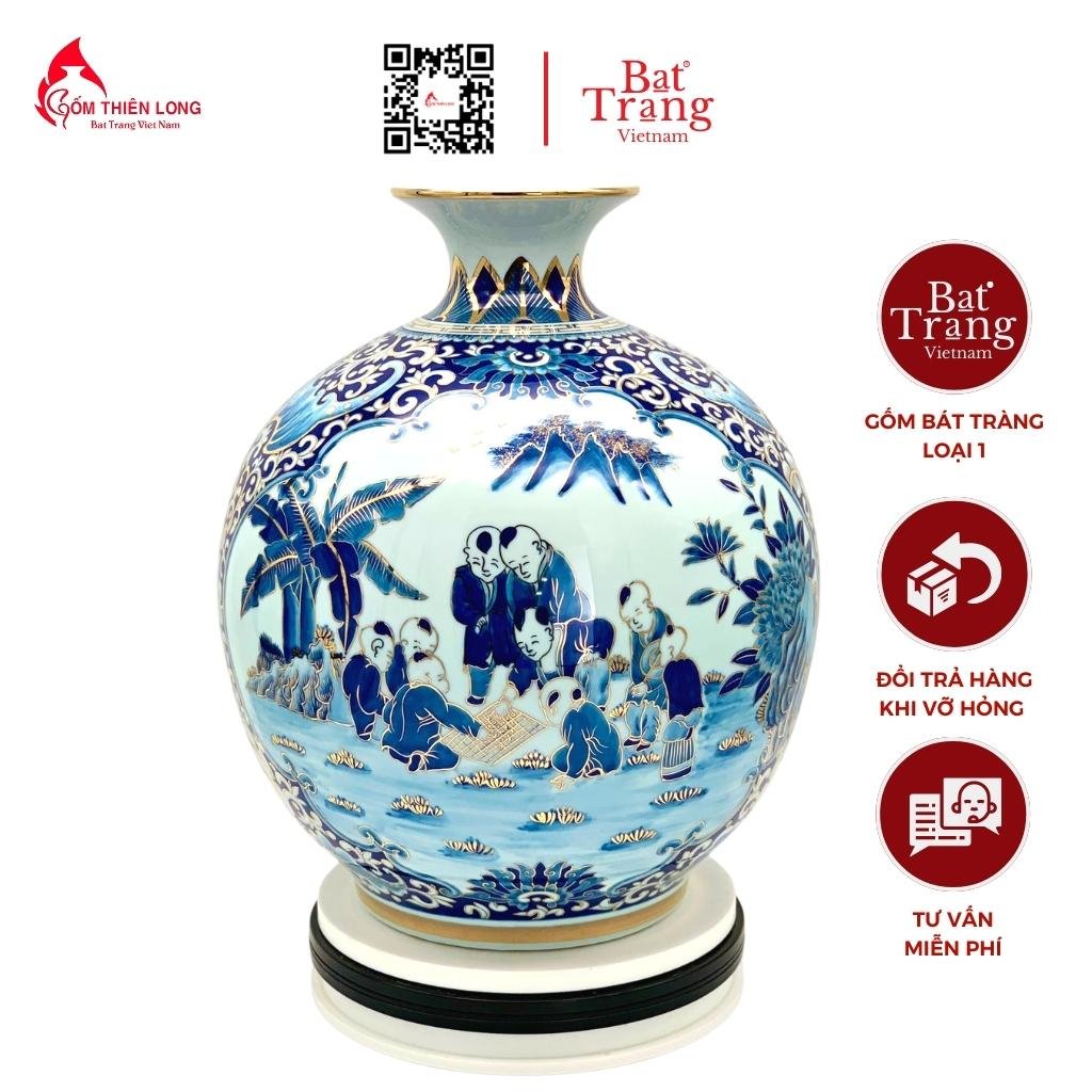 Bình hút lộc bách nhi vẽ vàng men lam cổ gốm Bát Tràng Thiên Long là một vật phẩm trang trí phong thuỷ được rất nhiều gia chủ yêu mến. Không chỉ làm tăng thêm vẻ đẹp cùng sự sang trọng, bề thế cho không gian sống nhà bạn mà sản phẩm còn ẩn chứa nhiều ý nghĩa tốt đẹp trong phong thuỷ. Hơn thế, bình hút lộc bách nhi vẽ vàng men lam cổ làm từ gốm sứ Bát Tràng còn nổi tiếng với mẫu mã bền đẹp, sự trang trọng mà nó mang lại.