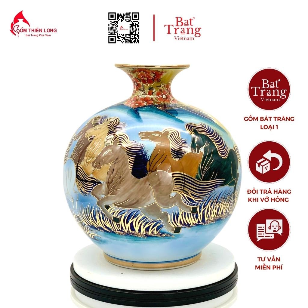 Những ai ưa chuộng gốm sứ Bát Tràng chắc chắn sẽ không còn lạ lẫm với cái tên trứ danh bình hút lộc mã đáo thành công vẽ vàng 3D nền xanh Bát Tràng. Mẫu bình ra đời được kết tinh từ thành quả của tinh hoa cùng sự sáng tạo nghề gốm sứ.