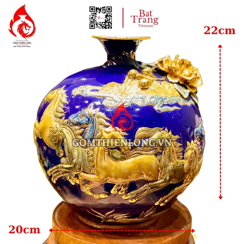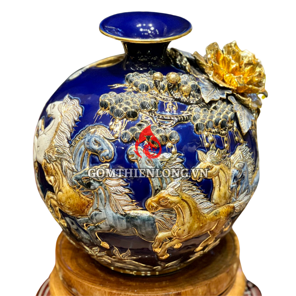 Địa chỉ cung cấp bình hút lộc mã đáo thành công vẽ vàng đắp nổi màu xanh tím Bát Tràng cao cấp?