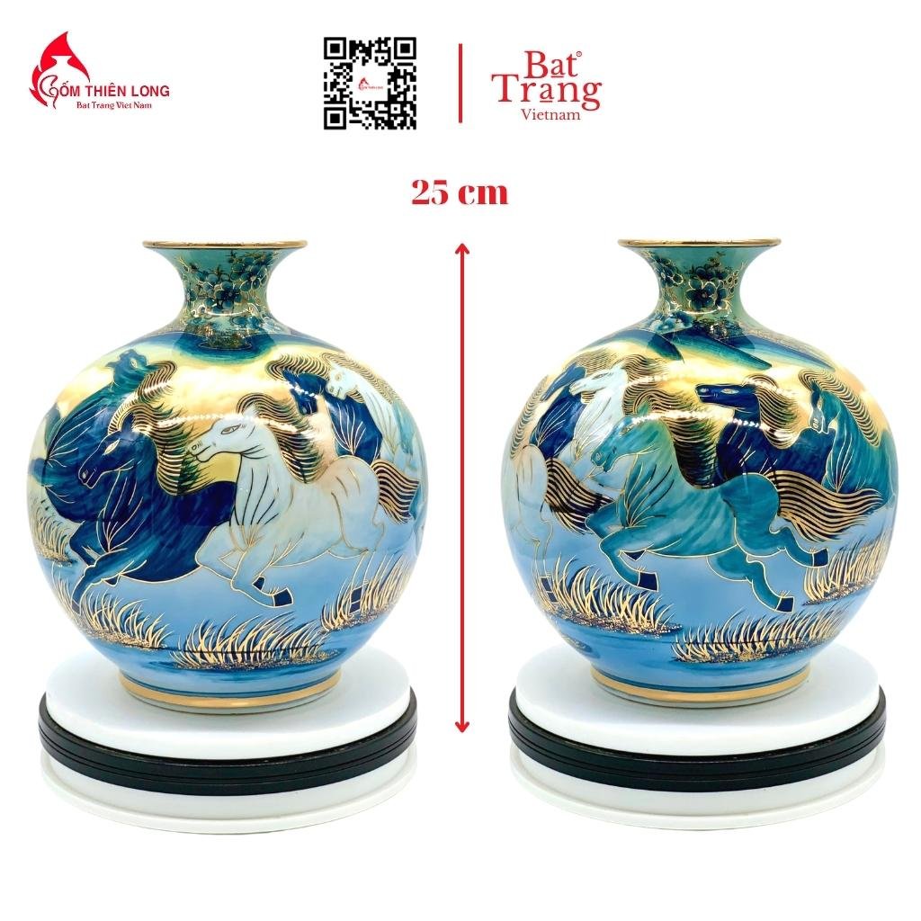 Bình hút lộc mã đáo thành công vẽ vàng men lam gốm Bát Tràng Thiên Long từ lâu đã trở thành bảo pháp trong phong thuỷ được nhiều gia chủ yêu mến và quan tâm. Việc bài trí mẫu bình gốm Bát Tràng này trong không gian sống và làm việc đã trở nên quá đỗi quen thuộc ở trong văn hóa người Việt.