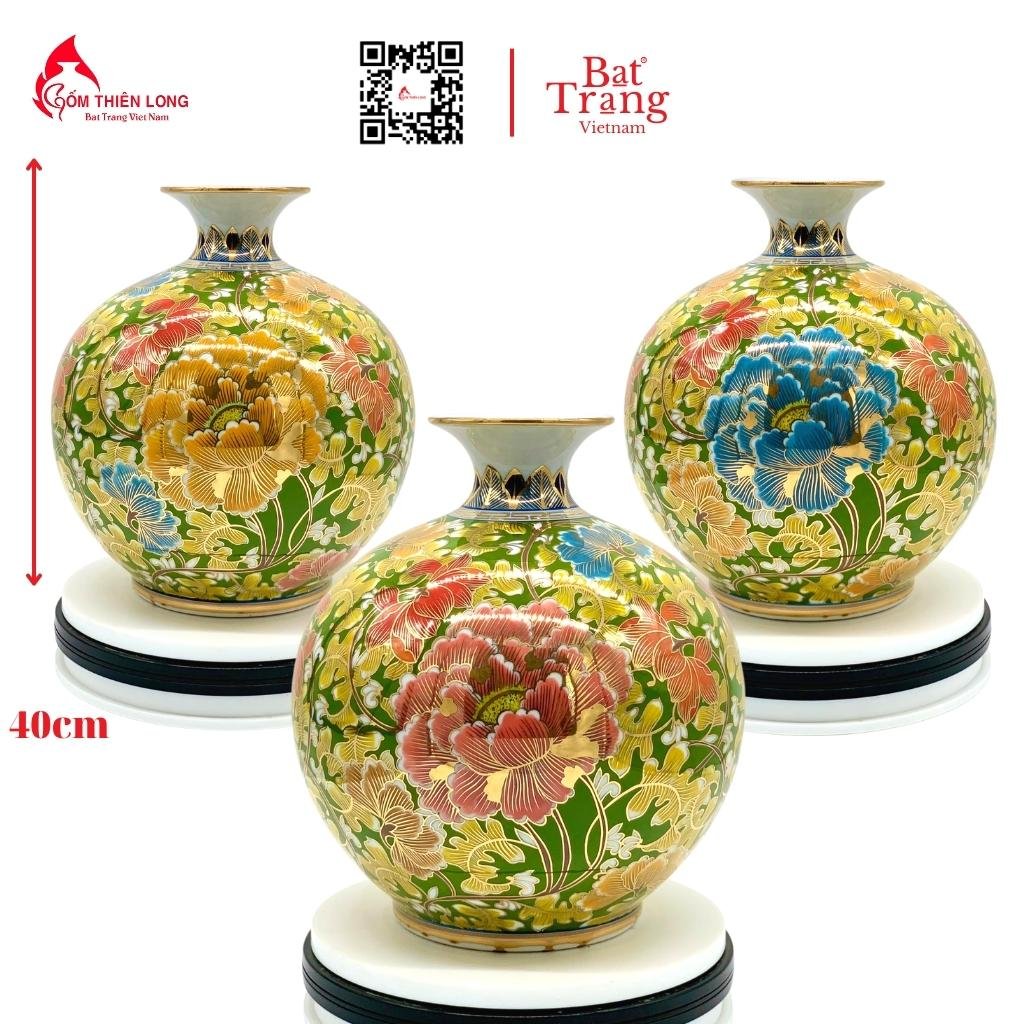 Bình hút lộc ngàn hoa phú quý vẽ vàng - vật phẩm giá trị từ làng gốm bát Tràng danh tiếng