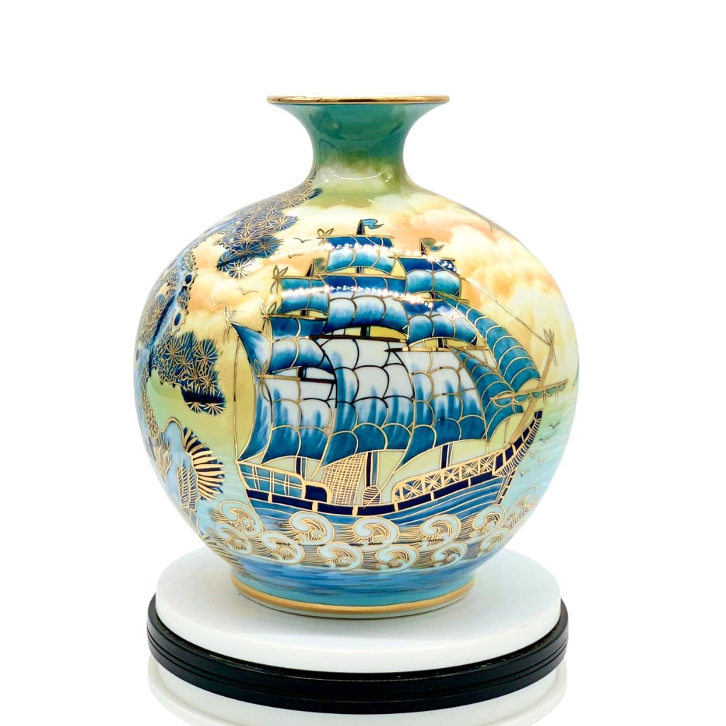 Về hoa văn, hoạ tiết và nghệ thuật tráng men đạt đến trình độ thượng thừa trên chiếc bình được làm thủ công 100% với hình ảnh thuyền buồm giữa bầu trời và đại dương mênh mông. Từng chi tiết từ mây, nước, núi, song biển, thuyền buồm tất cả đều hiện lên vô cùng chân thực, sống động, màu sắc tươi sáng, hài hoà, tất cả làm cho chiếc bình trở nên lung linh, thu hút mọi ánh nhìn.