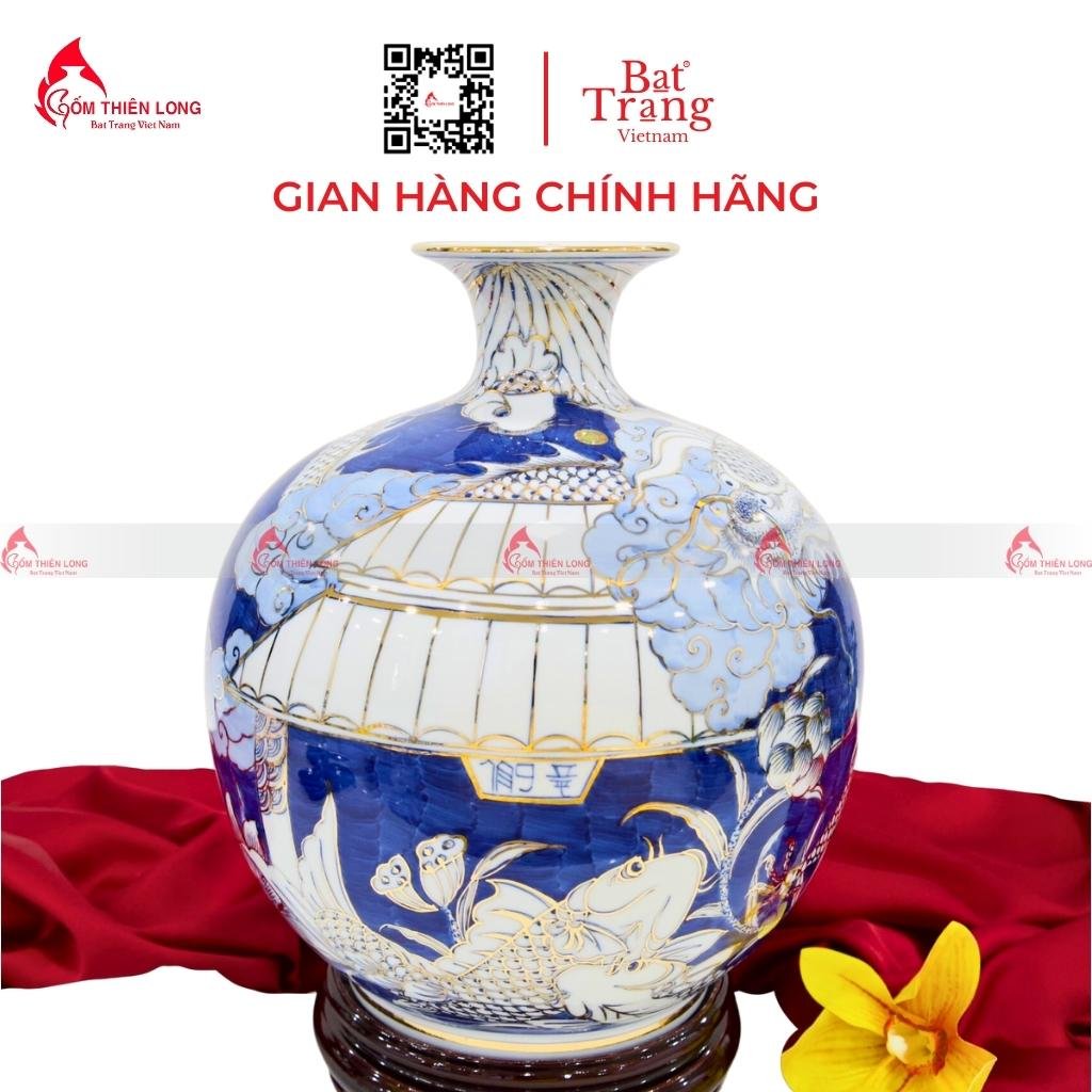 Bình hút tài lộc cá chép vượt vũ lâm môn 270723 là một vật phẩm phong thủy được nhiều người yêu thích và lựa chọn. Bình có hình dáng phình ở bụng, thuôn nhỏ ở miệng và có đế cao. Bình được vẽ hình cá chép vượt vũ môn, một biểu tượng của sự may mắn và thành công.