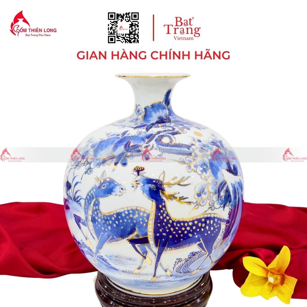 Bình hút tài lộc vẽ vàng cảnh phú quý trường thọ (đôi hươu, đôi hạc, quả đào) Bát Tràng là một vật phẩm phong thủy rất ý nghĩa, có thể mang lại may mắn, thịnh vượng, sức khỏe và hạnh phúc cho gia chủ.
