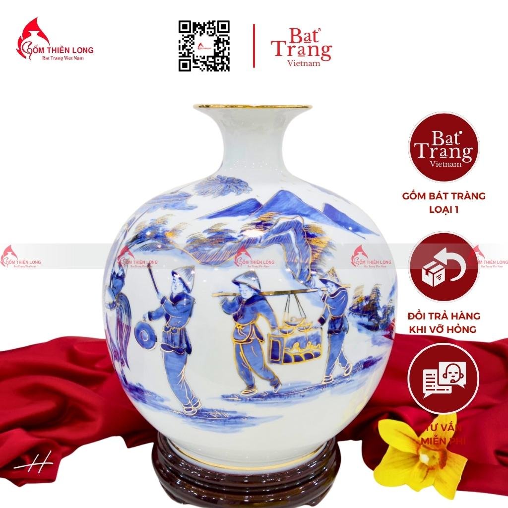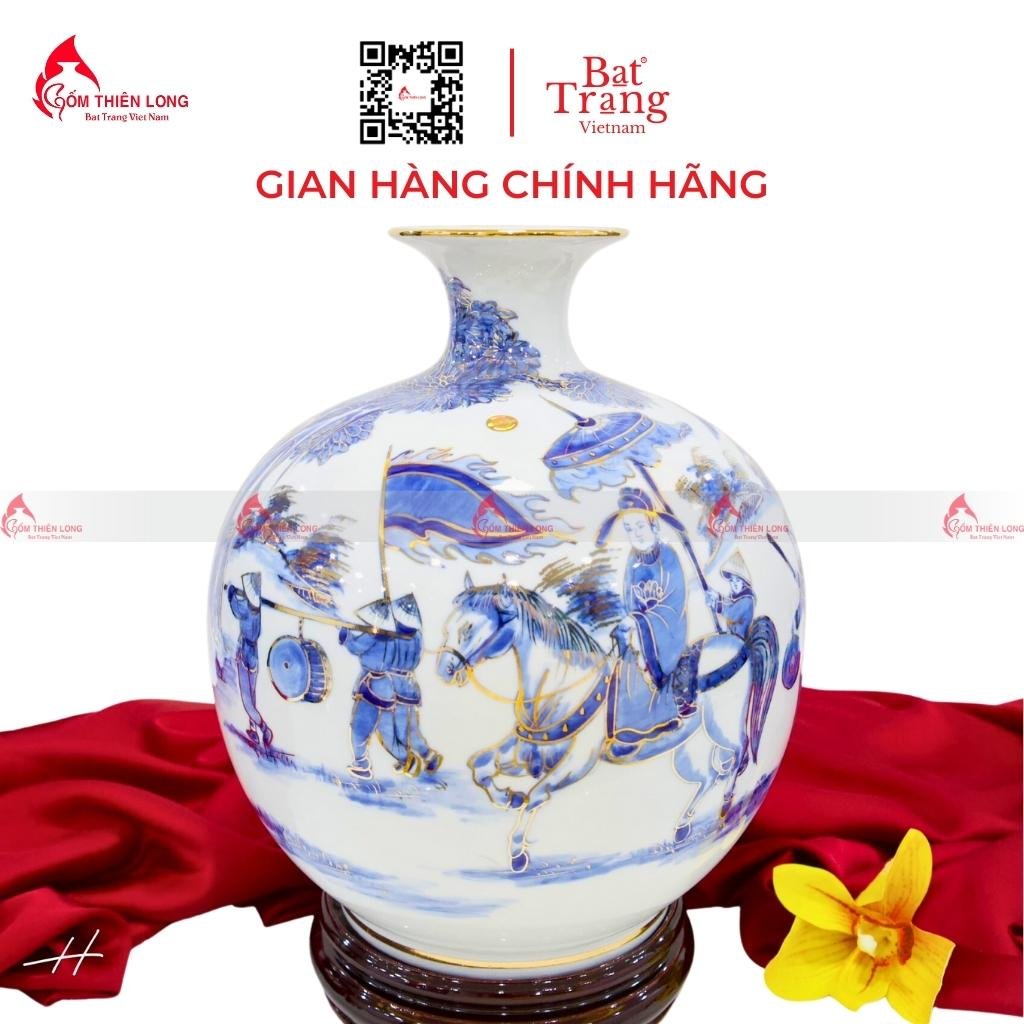 Bình được vẽ hình cảnh vinh quy bái tổ một cách tinh xảo và đẹp mắt, mang ý nghĩa phong thủy tốt lành.