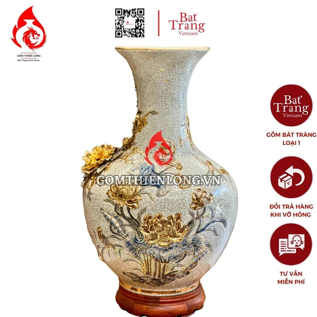Bình củ tỏi Bát Tràng men rạn đắp nổi vẽ vàng công hoa phú quý thường được đặt ở phòng khách, phòng làm việc hoặc phòng thờ để trang trí và mang lại may mắn, tài lộc cho gia chủ. Ngoài ra, bình củ tỏi còn có thể được sử dụng để cắm hoa, cắm hoa sen, cành đào ngày tết, trưng bày đồ lưu niệm,...