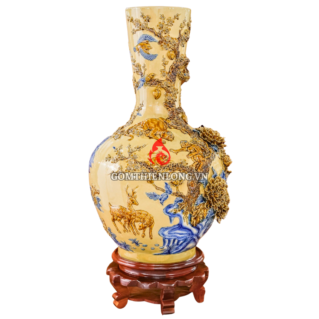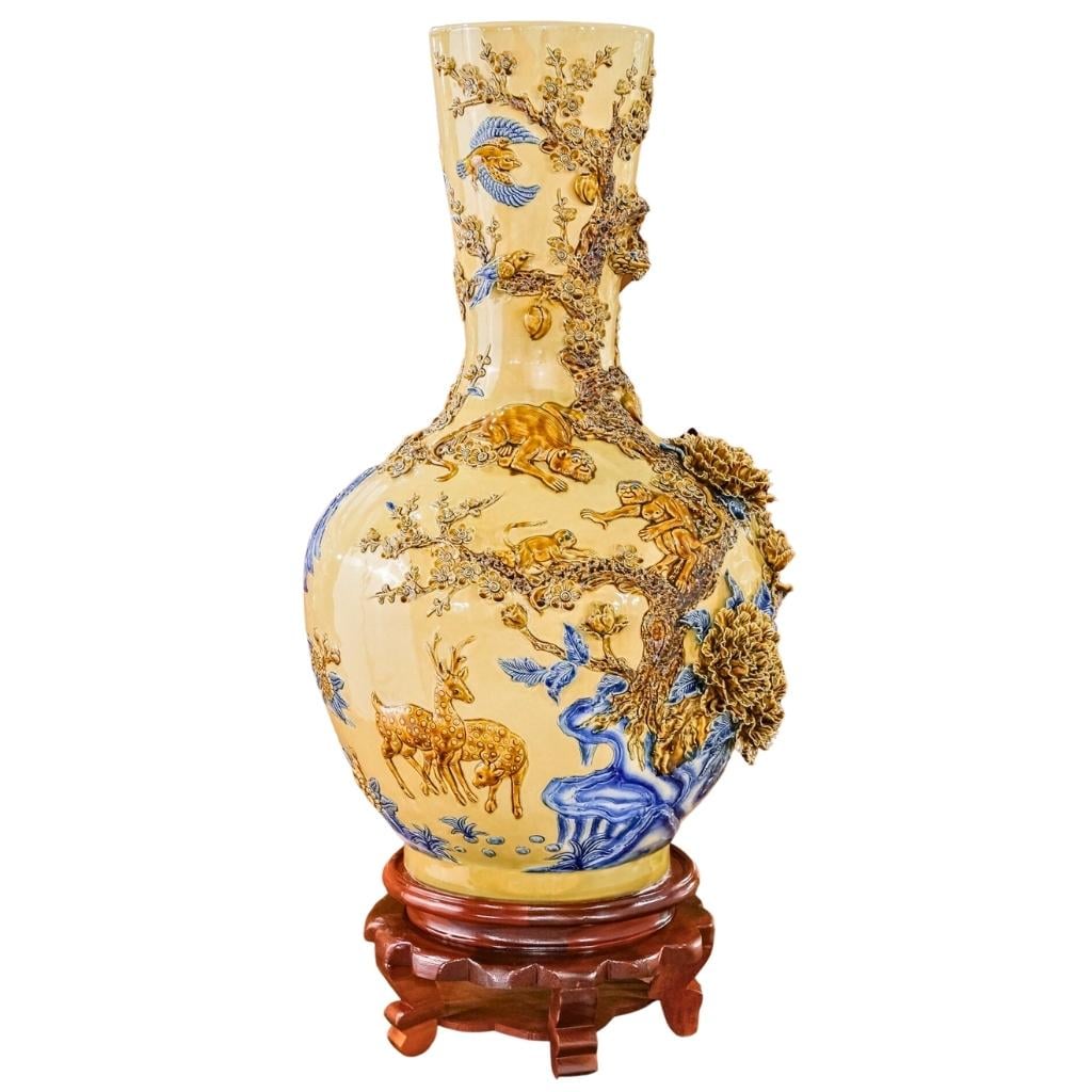 Bình Củ Tỏi Bát Tràng Men Vàng Hoàng Tộc Đắp Nổi Tước Lộc Phong Hầu 231193