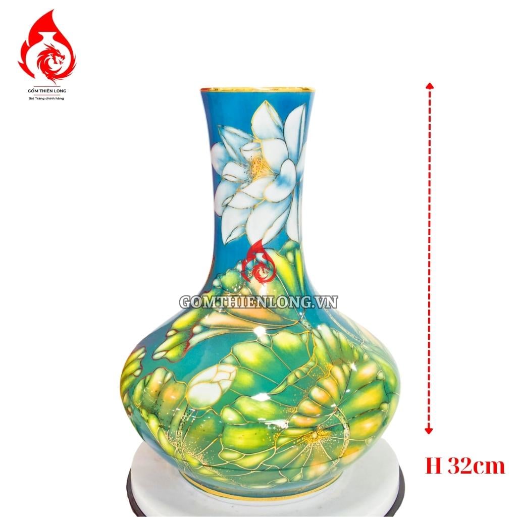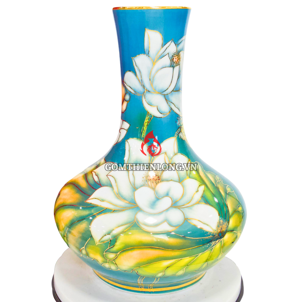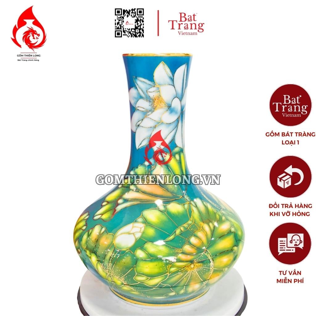 Bình củ tỏi Bát Tràng vẽ vàng hoa sen có ý nghĩa phong thủy rất tốt. Hình tượng hoa sen mang ý nghĩa của sự thanh cao, thuần khiết, vượt lên trên bùn lầy. Vàng kim tượng trưng cho sự giàu sang, phú quý. Vì vậy, bình củ tỏi Bát Tràng vẽ vàng hoa sen được coi là biểu tượng của sự may mắn, tài lộc, và bình an.