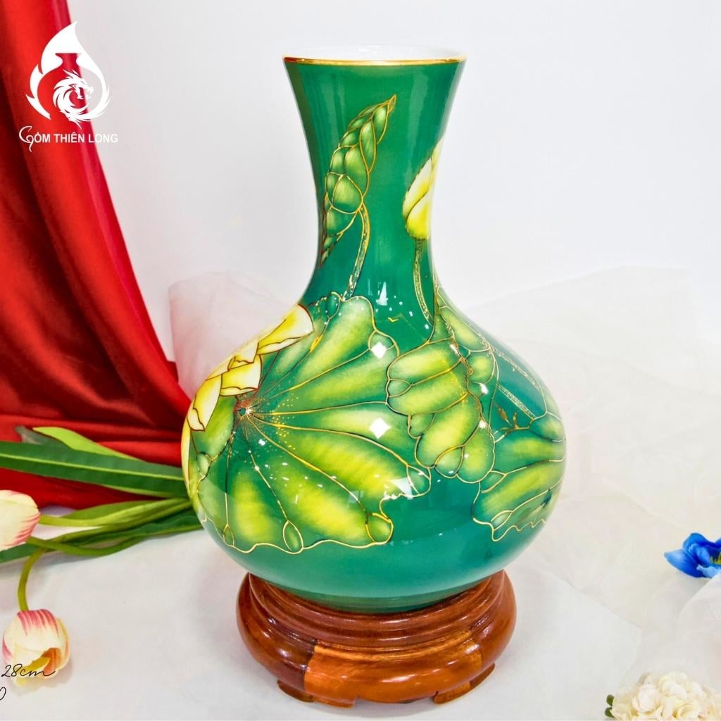 Bình Củ Tỏi Bát Tràng Vẽ Vàng Sen Phú Quý 231195