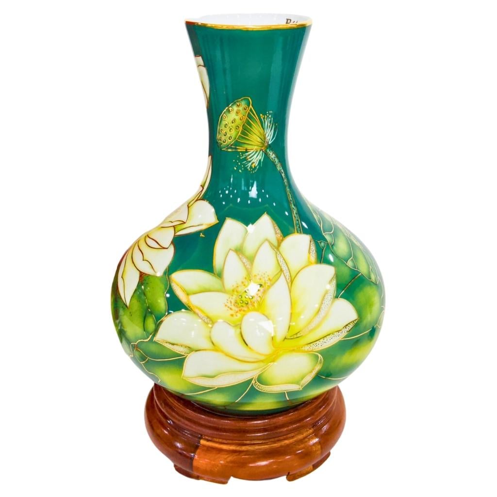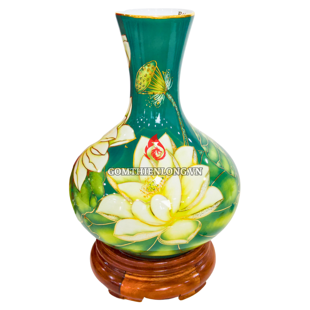 Bình củ tỏi Bát Tràng vẽ vàng hoa sen có ý nghĩa phong thủy rất tốt. Hình tượng hoa sen mang ý nghĩa của sự thanh cao, thuần khiết, vượt lên trên bùn lầy. Vàng kim tượng trưng cho sự giàu sang, phú quý. Vì vậy, bình củ tỏi Bát Tràng vẽ vàng hoa sen được coi là biểu tượng của sự may mắn, tài lộc, và bình an.