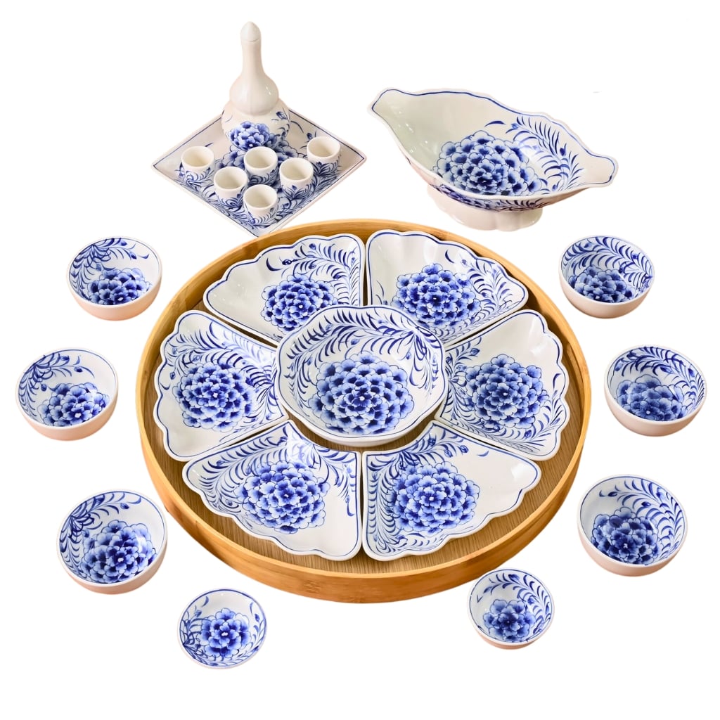 Địa chỉ mua bộ bát đĩa hoa mặt trời Bát Tràng vẽ hoa mẫu đơn uy tín: