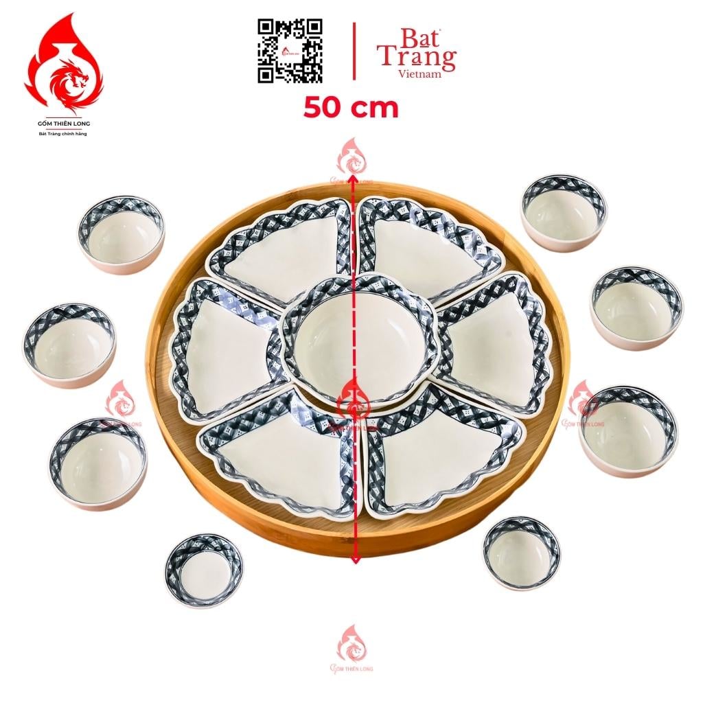 Kích thước: Bộ bát đĩa hoa mặt trời Bát Tràng vẽ viền hoa có 2 kích thước 50cm và 60cm, bạn có thể chọn bộ bát đĩa có kích thước phù hợp với nhu cầu sử dụng của gia đình mình.