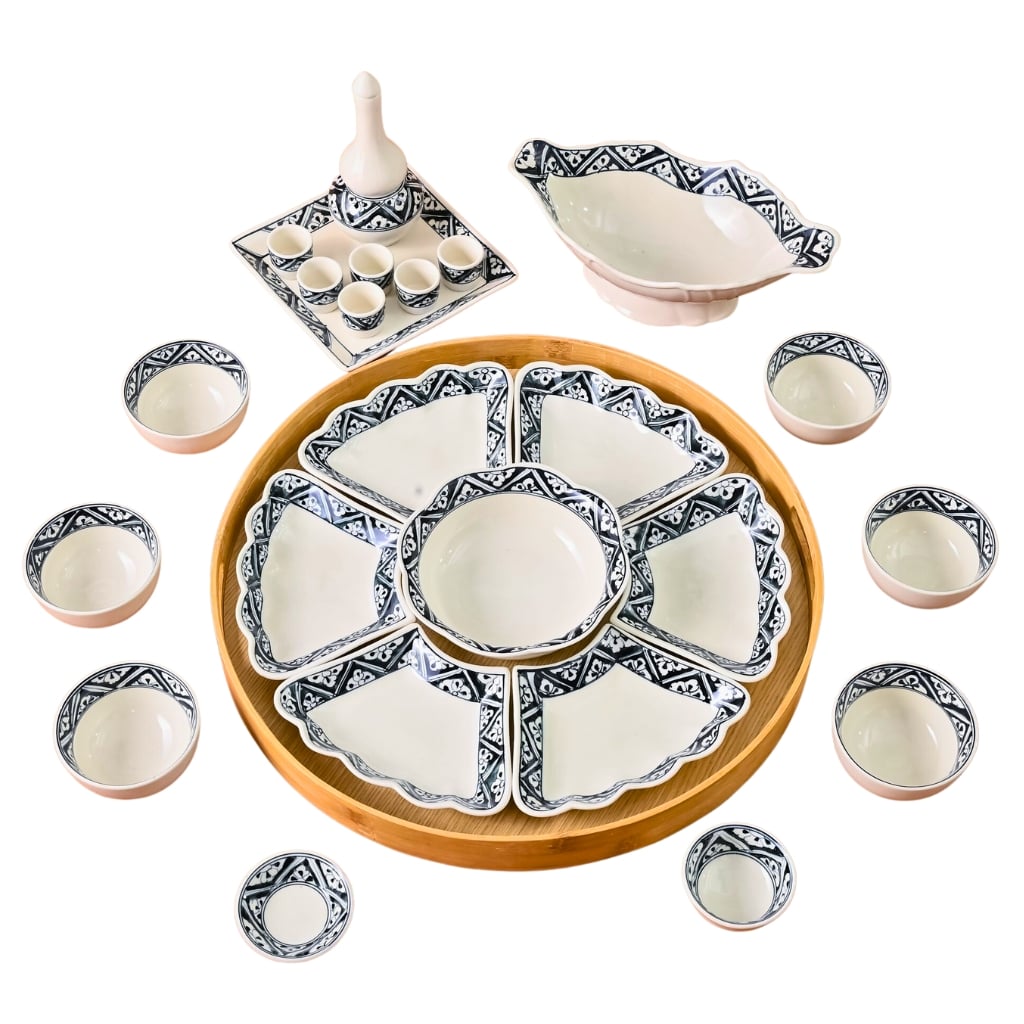 Men trắng cổ: là một loại men đặc trưng của gốm Bát Tràng, có màu trắng nhạt, mang vẻ đẹp cổ kính và tinh tế. Men bóng cũng có khả năng chống bám bẩn và dễ dàng vệ sinh, giúp bộ bát đĩa luôn sạch đẹp như mới.