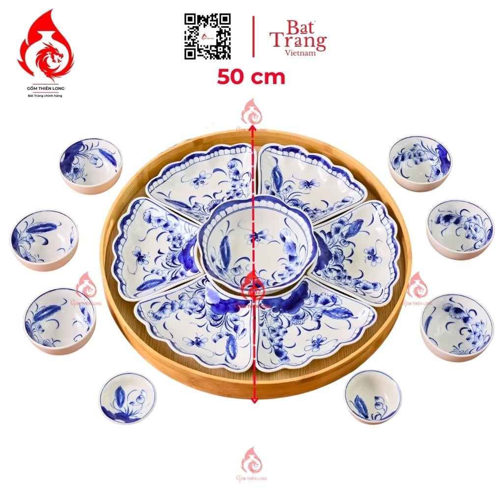 Kích thước: Bộ bát đĩa hoa mặt trời Bát Tràng vẽ sen chuồn có 2 kích thước 50cm và 60cm, bạn có thể chọn bộ bát đĩa có kích thước phù hợp với nhu cầu sử dụng của gia đình mình.