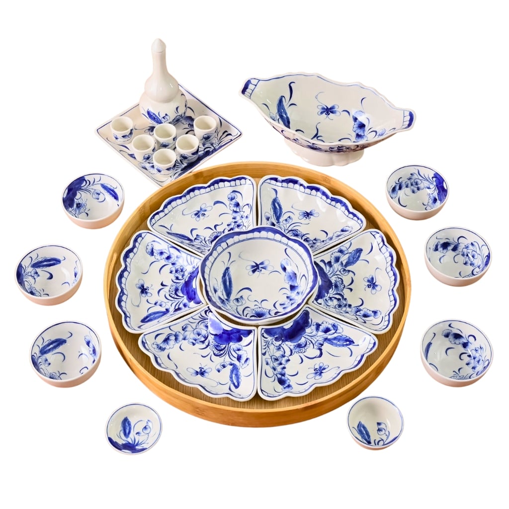 Bộ bát đĩa Bát Tràng hoa mặt trời vẽ sen vàng – một bộ sản phẩm đồ gốm sứ được rất nhiều gia đình yêu thích vì sở hữu kiểu dáng độc đáo, màu sắc sang trọng. Bộ sản phẩm được thiết kế dành riêng để làm một mâm cơm cúng gia tiên hoàn hảo vào những dịp đặc biệt như lễ tế, giỗ chạp. Hãy cùng chúng tôi khám phá xem bộ bát đĩa Bát Tràng hoa mặt trời vẽ sen vàng này có gì đặc biệt ở bài viết này nhé!