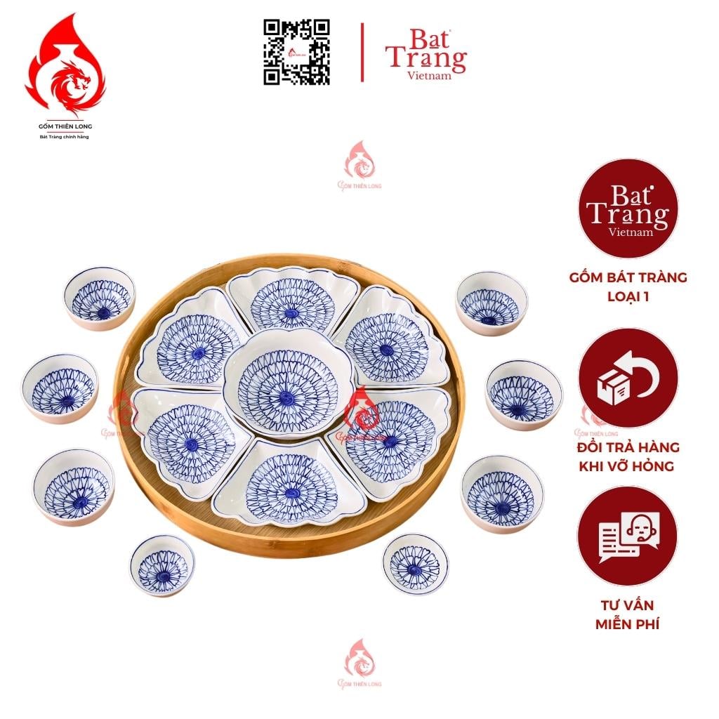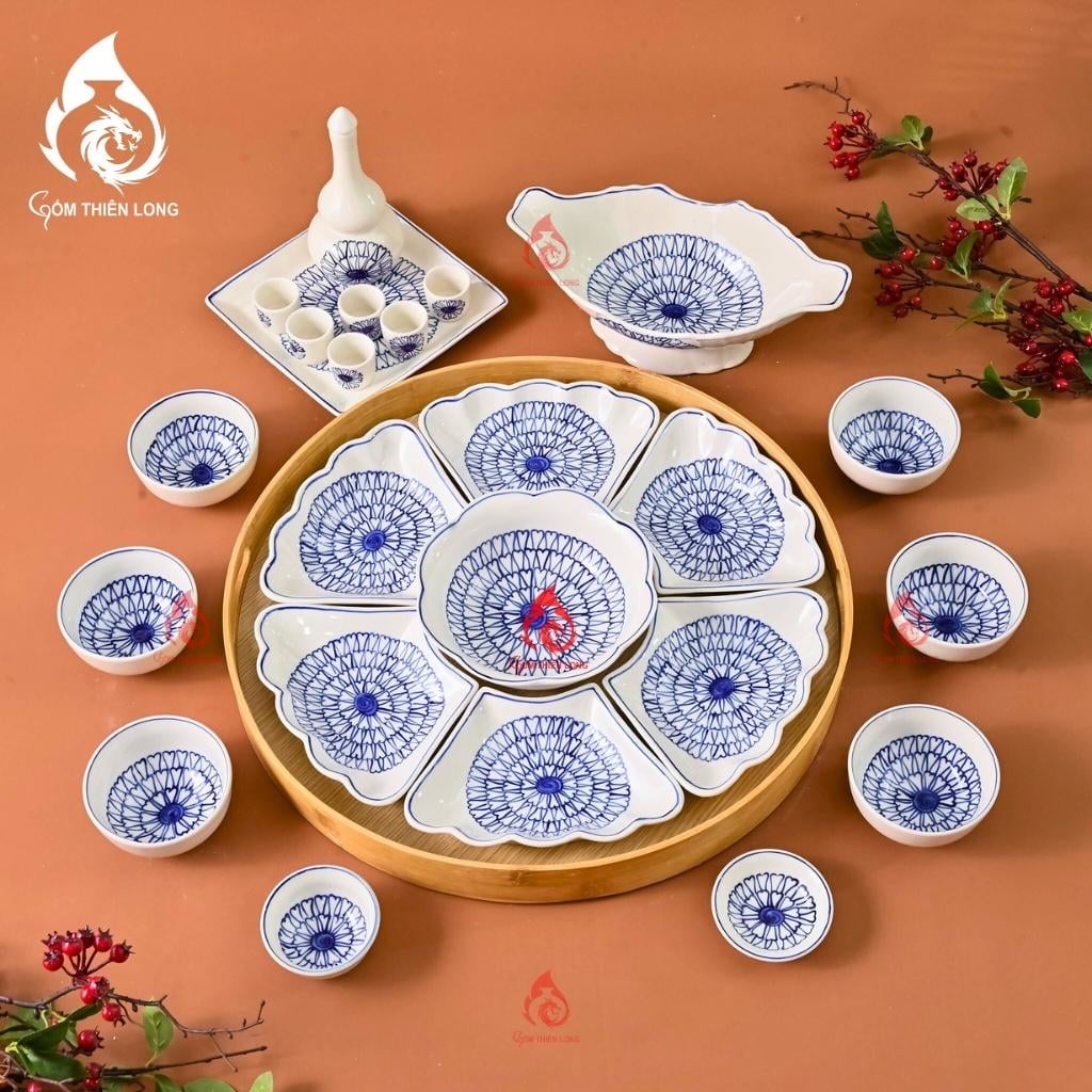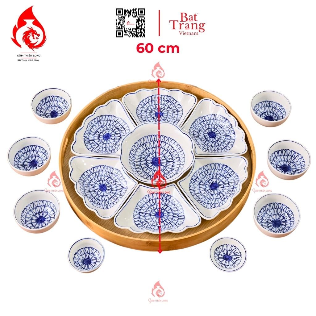 Bộ Bát Đĩa Hoa Mặt Trời Bát Tràng Cao Cấp - Hàng Loại 1 - Đốt Khử 1280 Độ C
