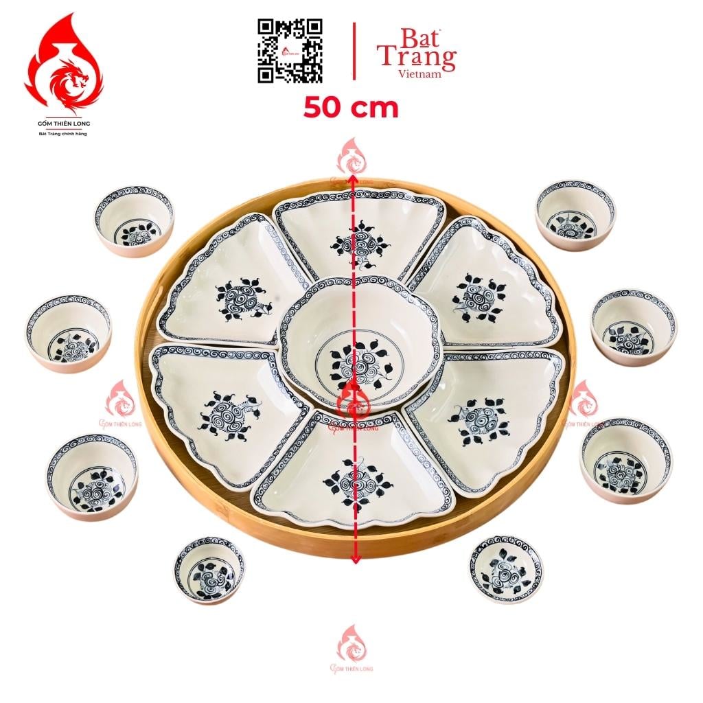 Kích thước: Bộ bát đĩa hoa mặt trời Bát Tràng vẽ hoa cẩm tú cầu có 2 kích thước 50cm và 60cm, bạn có thể chọn bộ bát đĩa có kích thước phù hợp với nhu cầu sử dụng của gia đình mình.