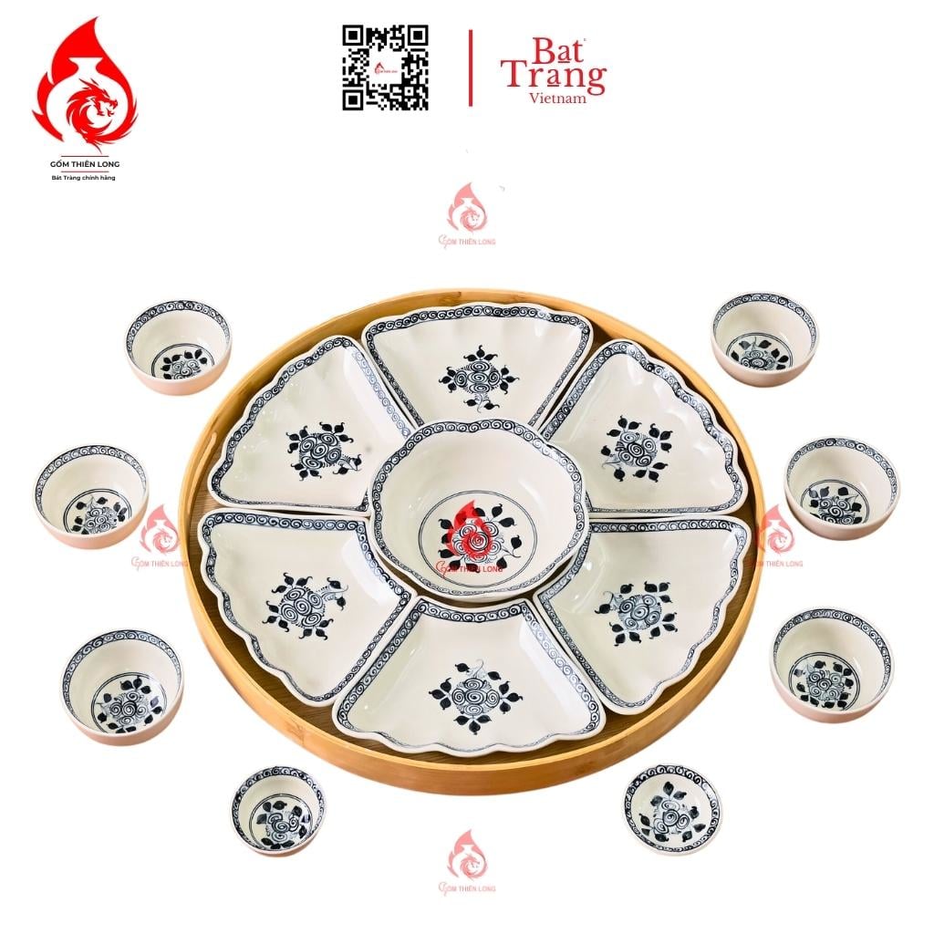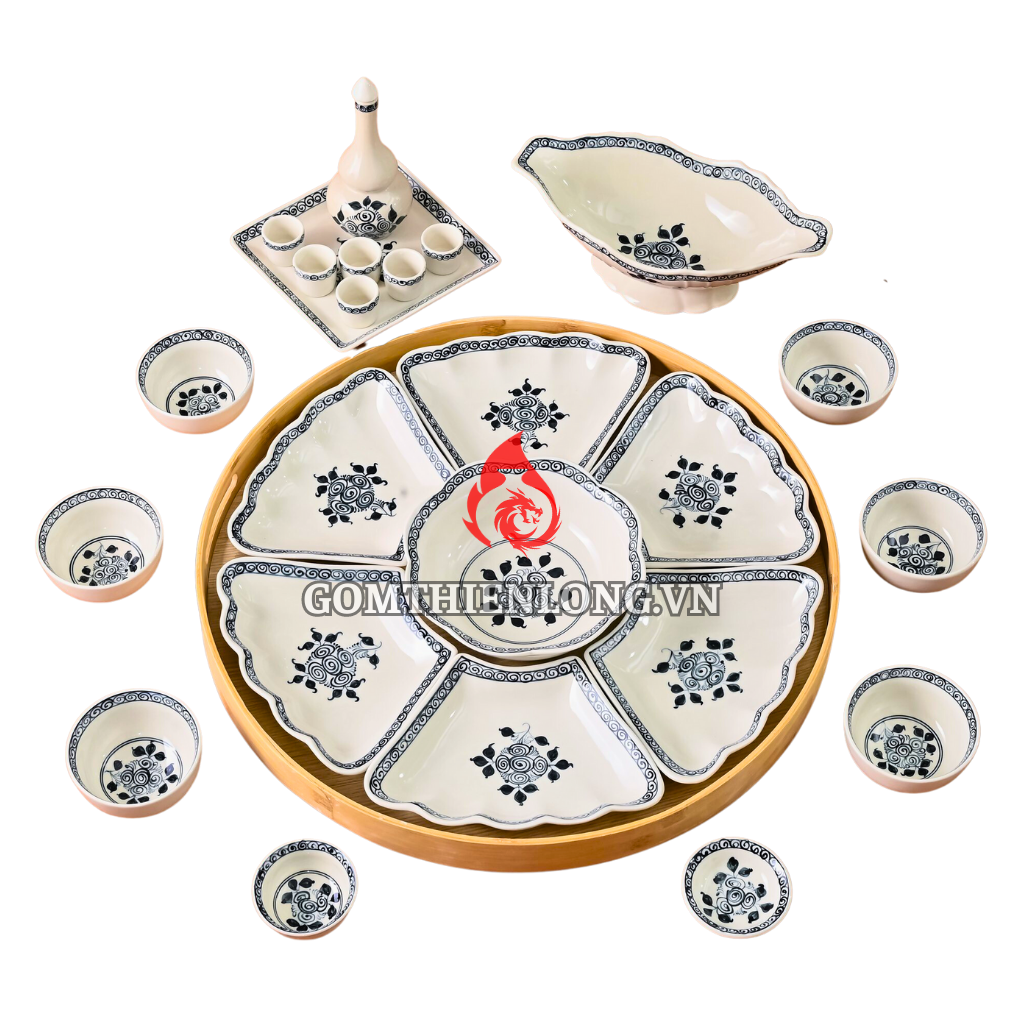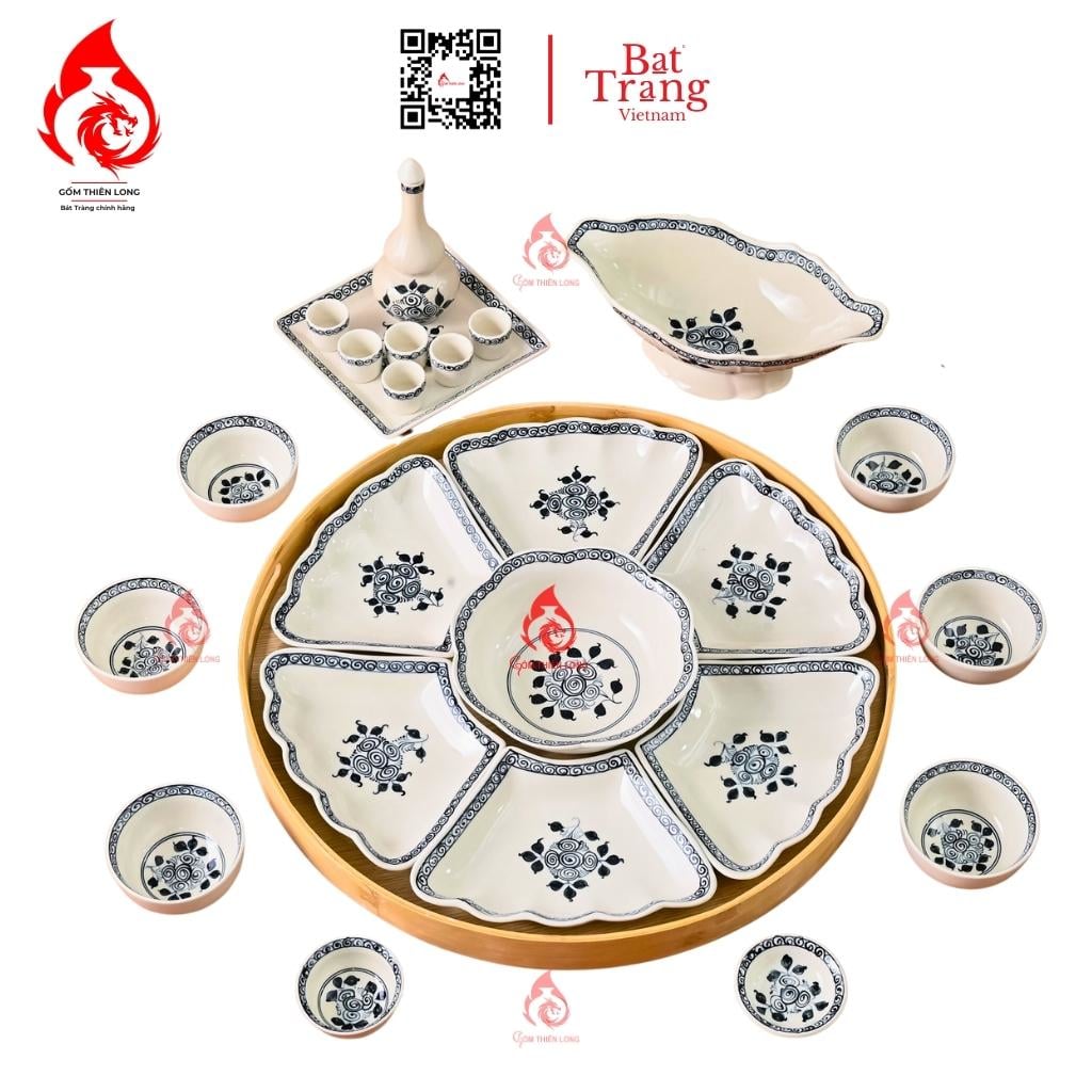 Bên cạnh đó, bộ bát đĩa hoa mặt trời Bát tràng cánh lượn vẽ Hoa cẩm tú có thể bao gồm các vật phẩm sau: bát con, bộ rượu, mắm muối, đĩa cánh hoa, bát tô, bộ nậm, bát gà,...