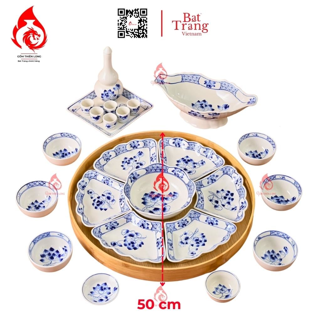 Kích thước: Bộ bát đĩa hoa mặt trời Bát Tràng vẽ hoa sen có 2 kích thước 50cm và 60cm, bạn có thể chọn bộ bát đĩa có kích thước phù hợp với nhu cầu sử dụng của gia đình mình.