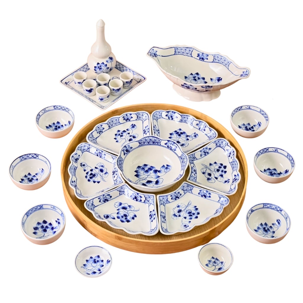 Một bộ bát đĩa sang trọng sẽ gồm đầy đủ những vật phẩm quan trọng, cần thiết ở trong mâm lễ cúng dâng lên bàn thờ gia tiên, thần Phật, có thể kể đến như: