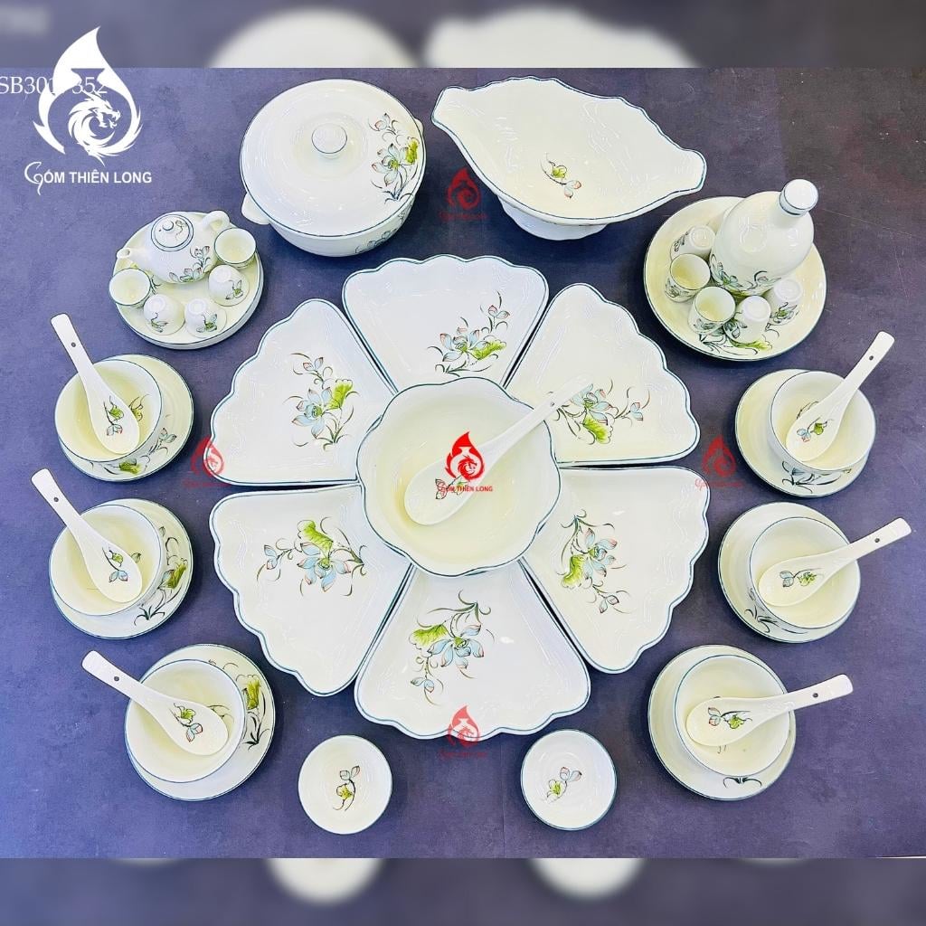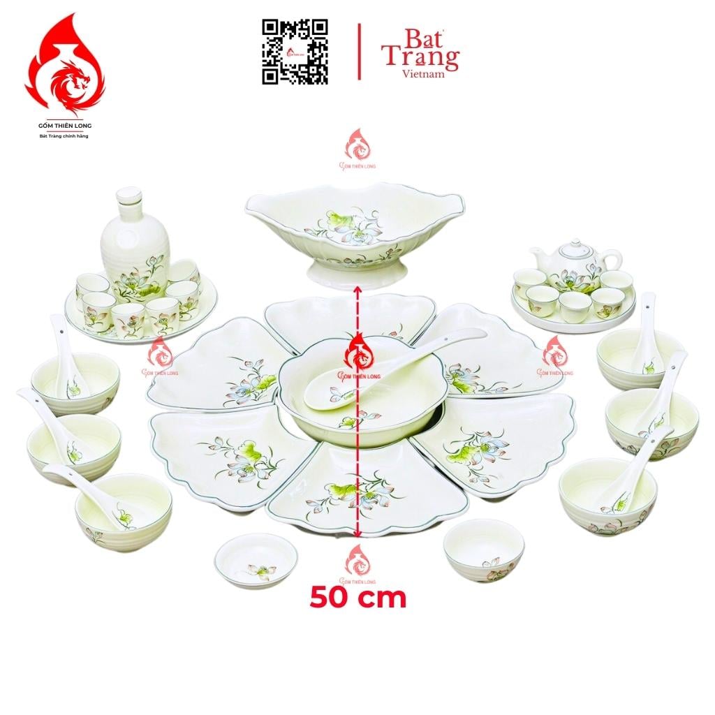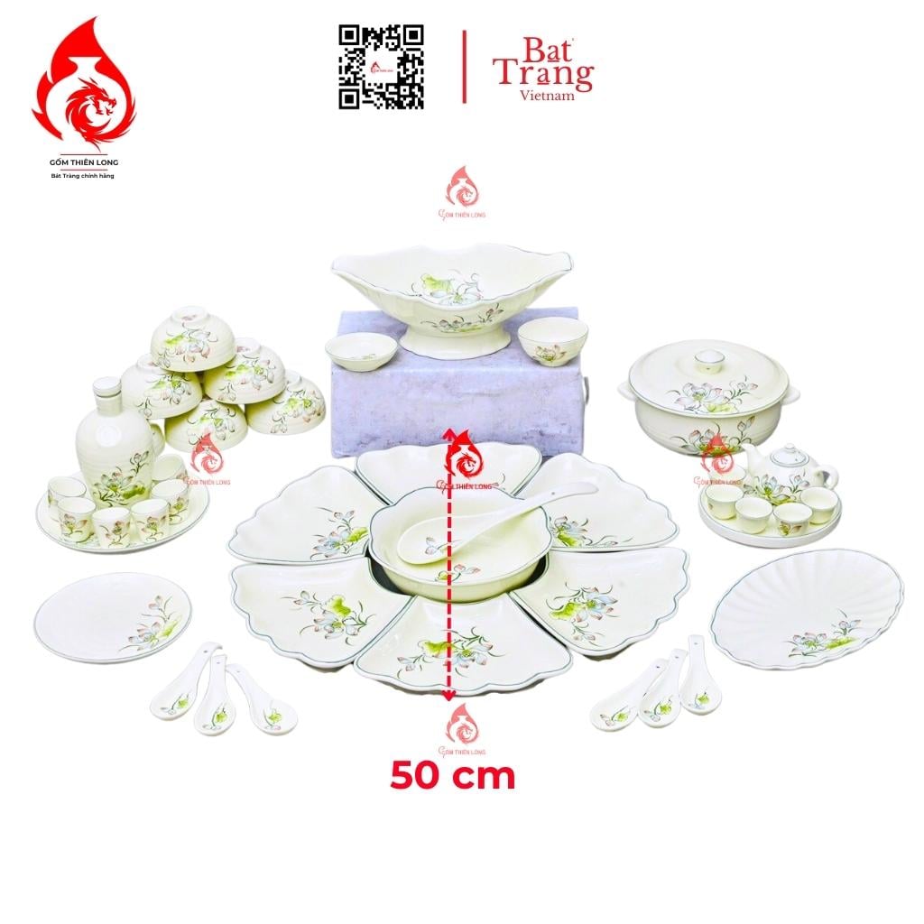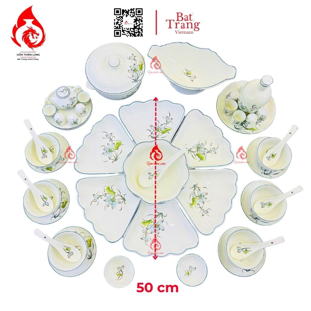 Bộ Đầy Đủ 4: + 6 thìa, 1 muôi + bát gà + 1 bộ nậm + 1 bộ trà + 1 đĩa bầu dục + 1 đĩa ảo