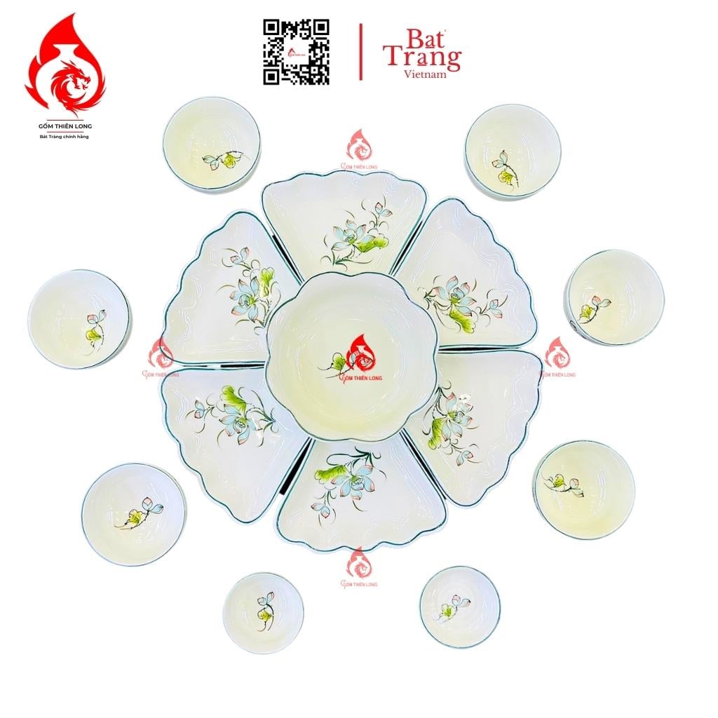 Bộ Cơ Bản: 1 bát tô - 6 đĩa cánh hoa - 6 bát cơm - 2 mắm muối (15 món )